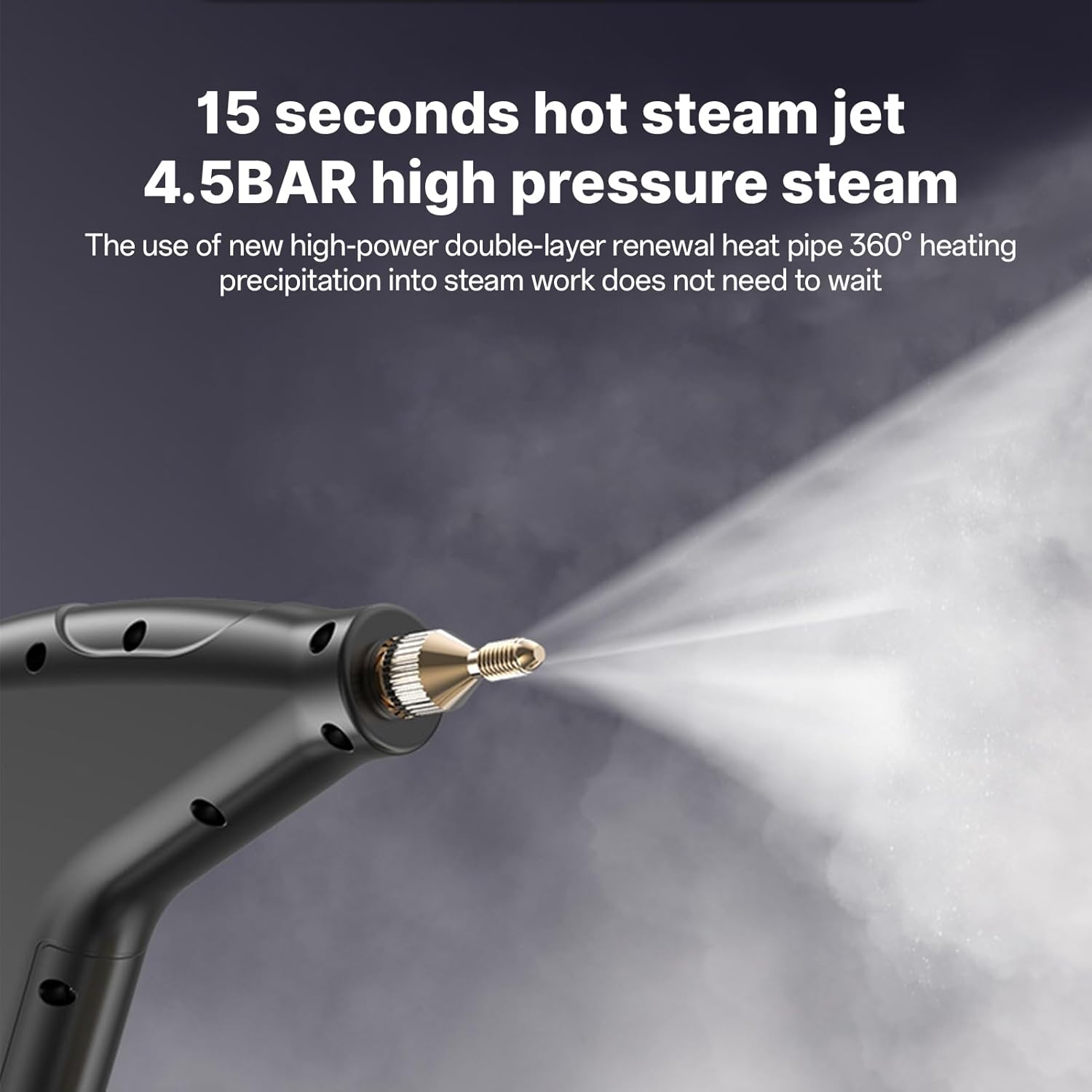 • 【Deep Cleaning】Deep steam cleaner with 1500W high power, can emit 105℃/221℉ high temperature and 4.5 Bar high pressure, 15 seconds quick heating. Quickly disintegrates stains and penetrates into various gaps and corners to disintegrate and remove old dirt.
