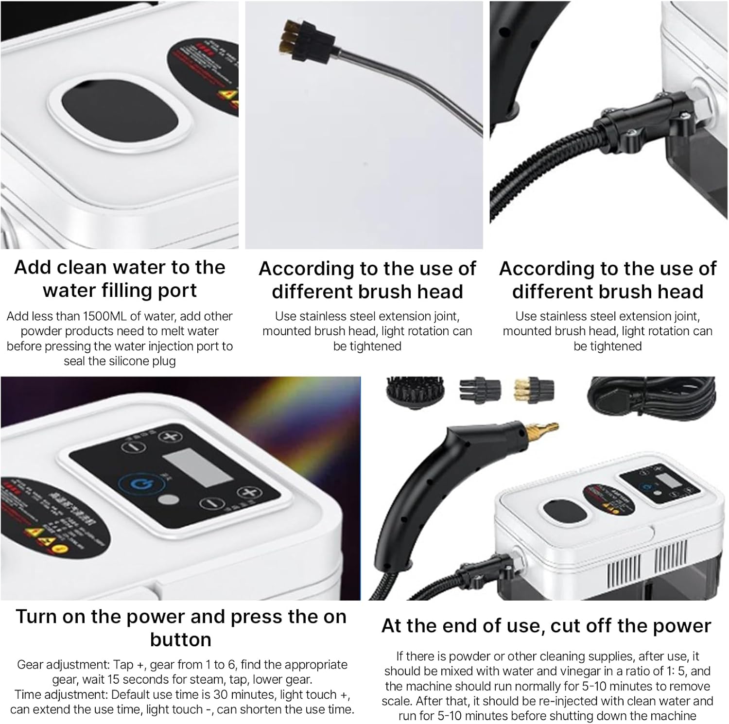 • 【Touch Screen and 6 Levels Adjustable】Steam cleaner with smart touch screen gears adjustment button, 6 levels adjustable. The screen will show the real-time use of gear.