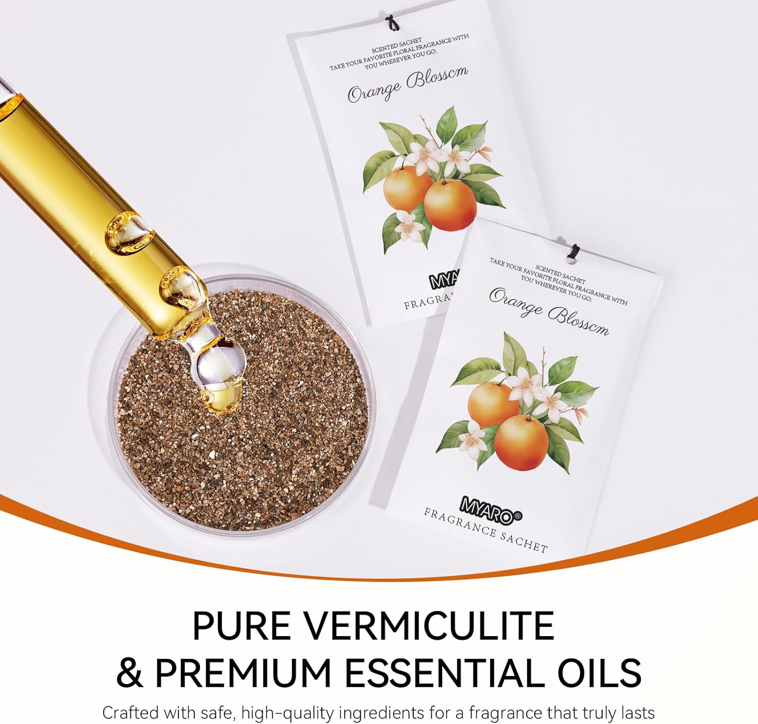 • MYARO Orange Blossom Sachet Bags: Includes 12 scented sachets (each bag size: 4.13 inch x 2.76 inch). Our natural fragrance will take you on a journey with the fresh scents sachet packets