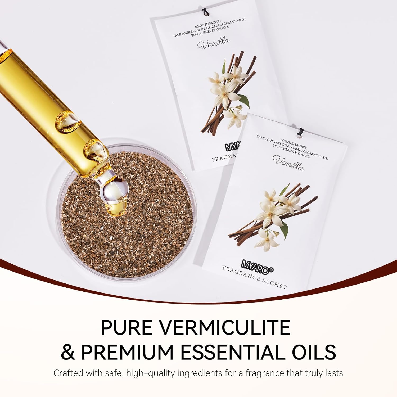 • MYARO Vanilla Sachet Bags: Includes 12 scented sachets (each bag size: 4.13 inch x 2.76 inch). Our natural fragrance will take you on a journey with the fresh scents sachet packets