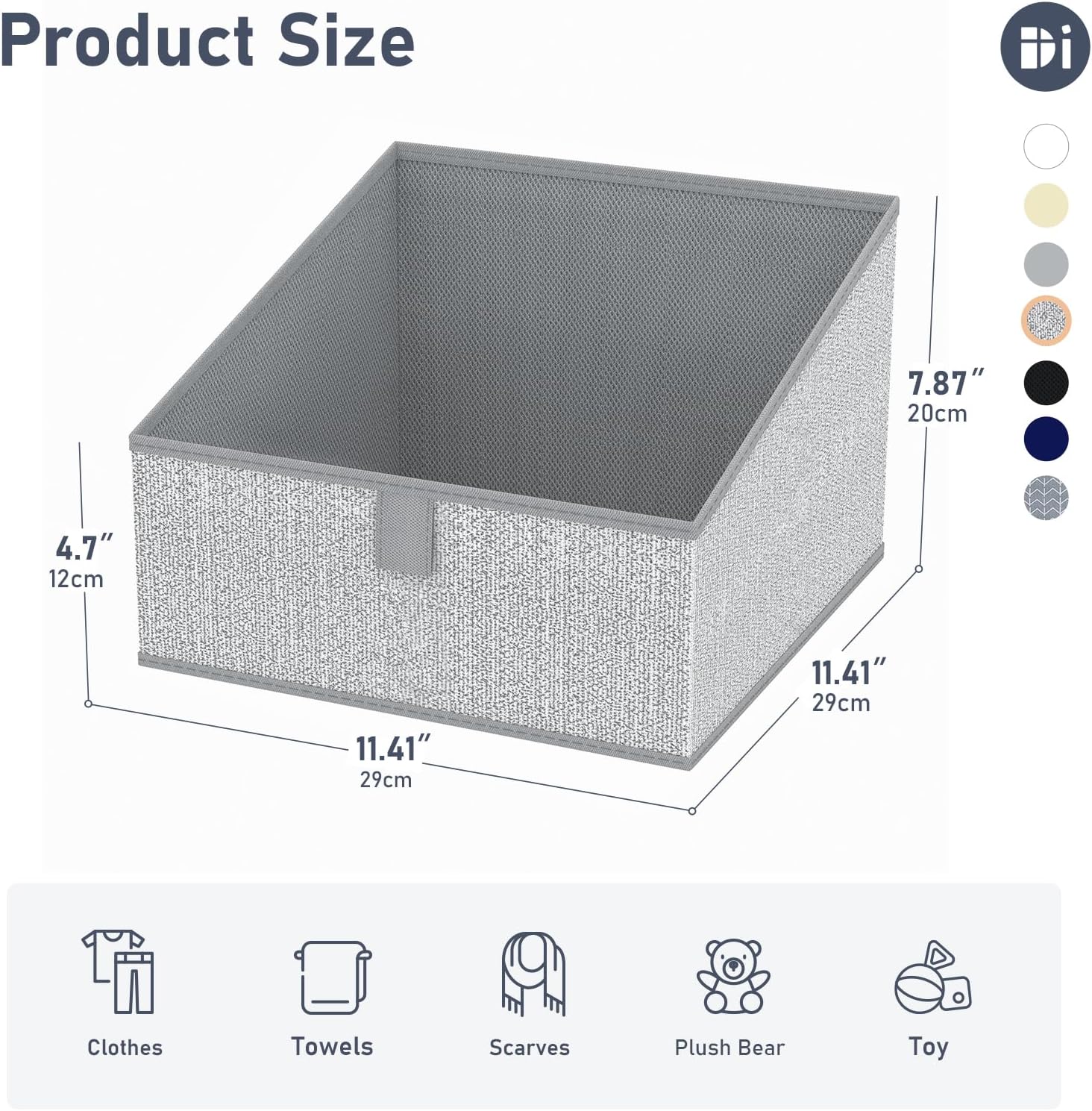 • 【Trapezoidal Design】These storage cubes are Trapezoid design that makes finding things convenient, also allows easy access when putting on the highest shelf. These are ideal closet bins for clothes, bags, shoes, towels, blankets, toys, dolls, and more