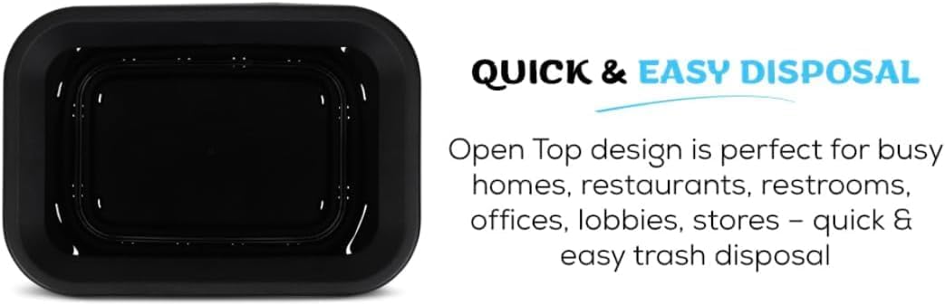 • QUICK & EASY DISPOSAL – Open Top design is perfect for Commercial Spaces and Busy homes: Restaurants, Restrooms, Offices, Lobbies, Stores – Quick & Easy Trash Disposal