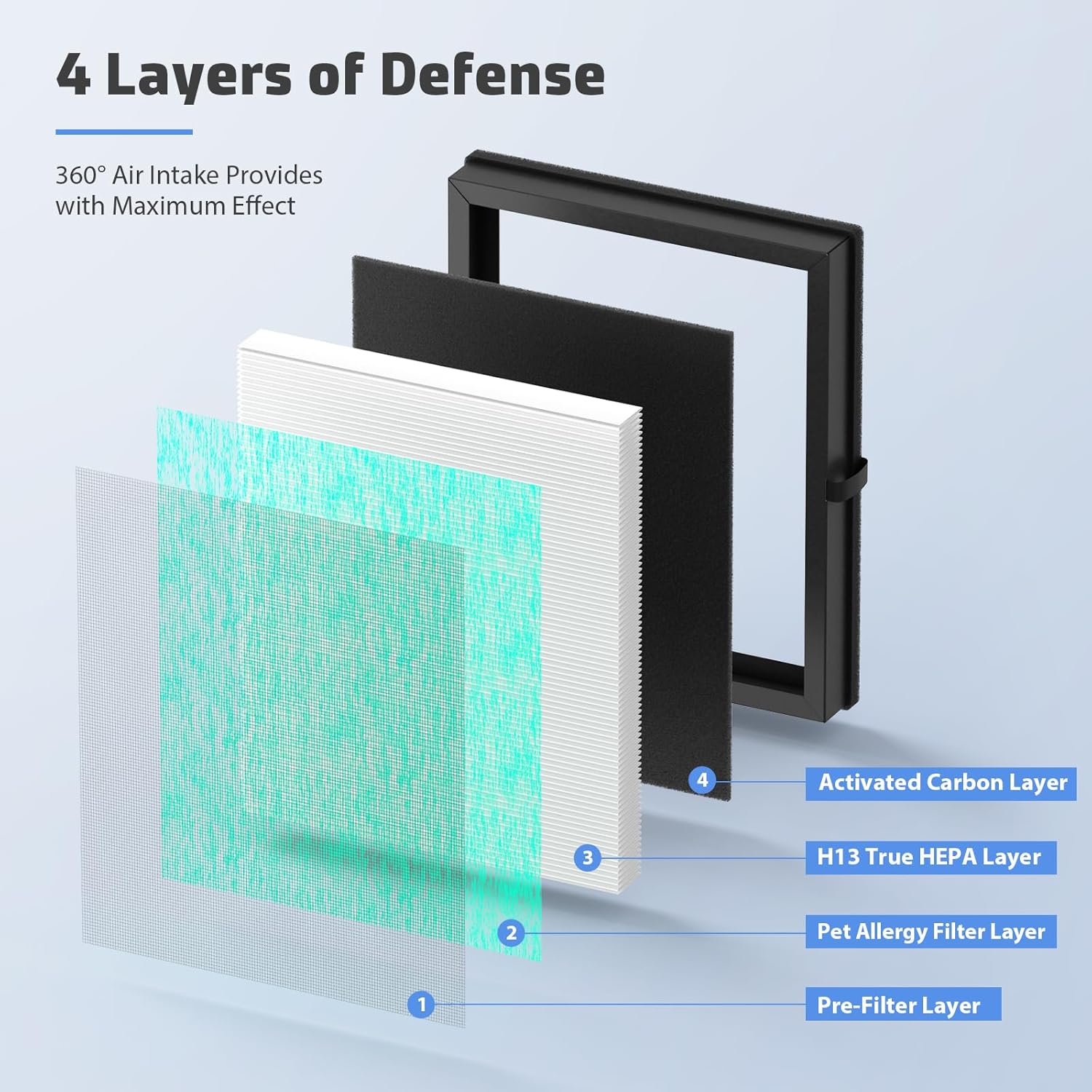 • 【Filtration Performance】High-efficiency filtration layer improves air quality and promotes your health, can filter airborne such as smoke pollen dander hair smell.