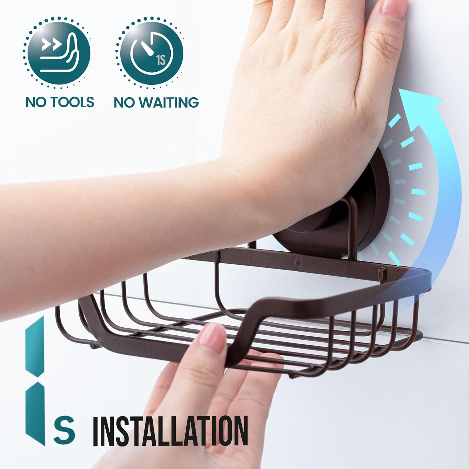• STRONG SUCTION & DURABILITY: Shower soap dish is made of premium rustproof metal material. Our suction cup of bar soap holder based on the bionics octopus sucker principle is made of anti-aging TPE material, which hold up to 11 lbs. and can be firmly attached to the smooth surface. Can be reinstalled and removed many times without damaging the wall and without leaving a trace