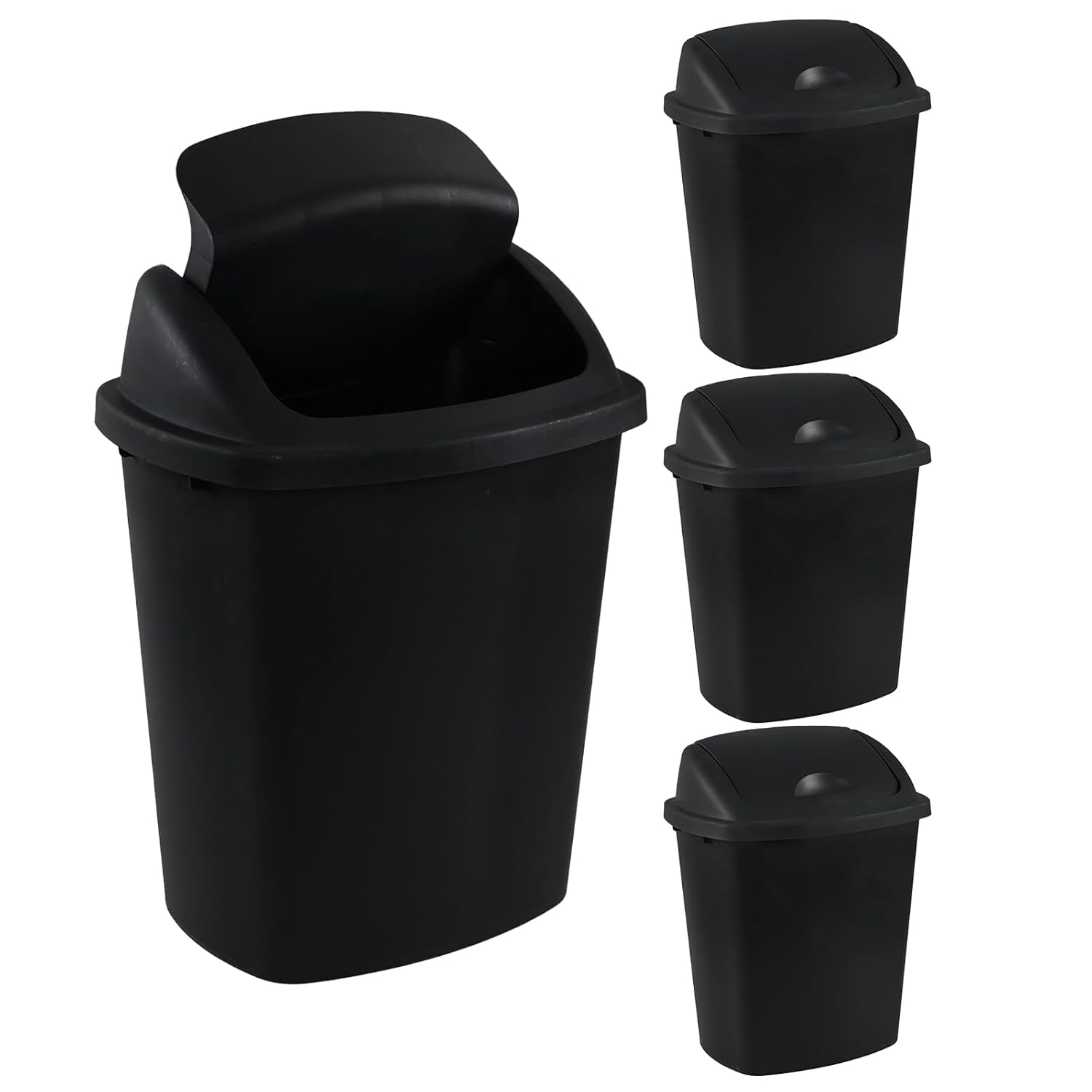 6 Gallon Swing Top Trash Can Outdoor and Indoor Recycle Bin, Plastic Garbage Can with Swing-Lid, Black, 4-Pack