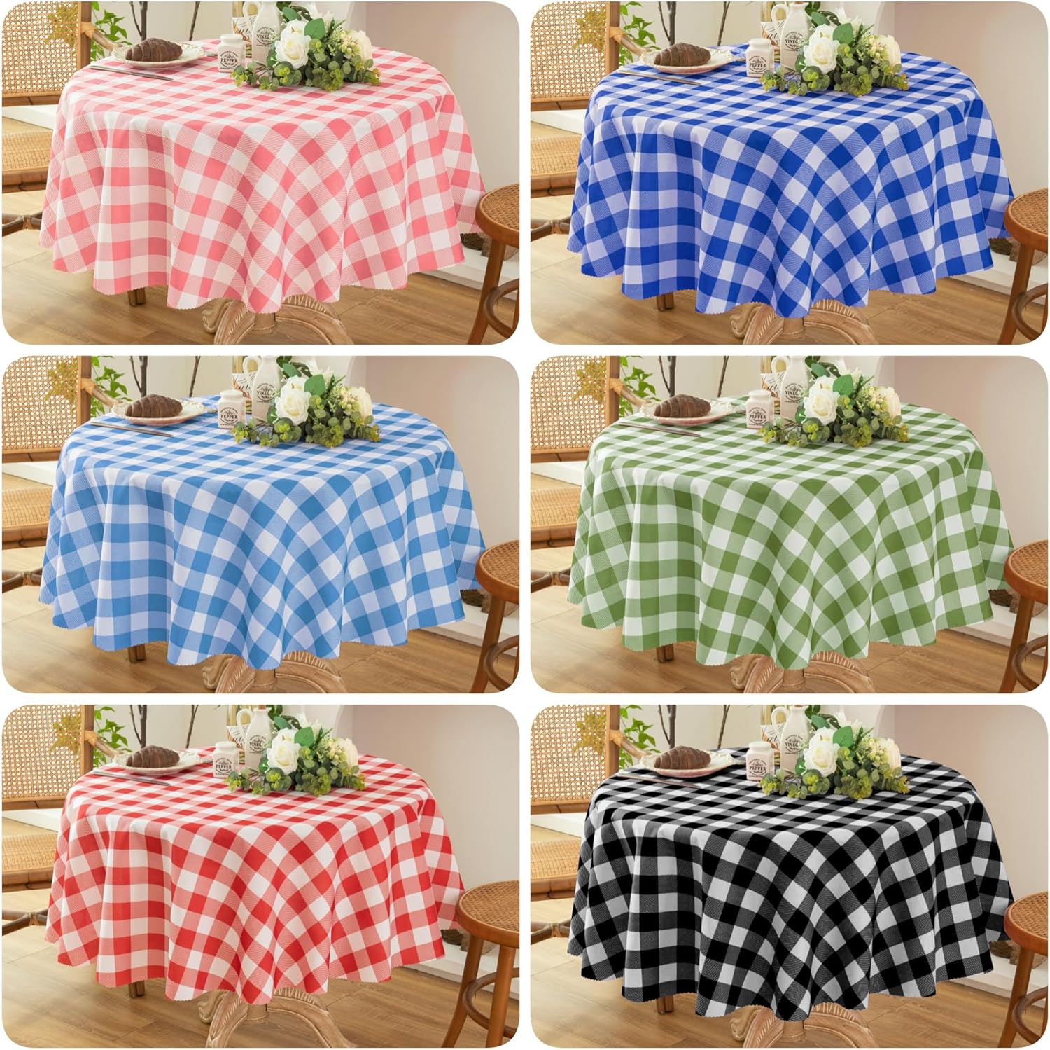 • CLASSIC GINGHAM CHECKERED DESIGN: Our checked tablecloth features a pattern of small, evenly spaced checks in two contrasting colors, often white and another color. The classic gingham plaid pattern for table cloth is a timeless and versatile choice