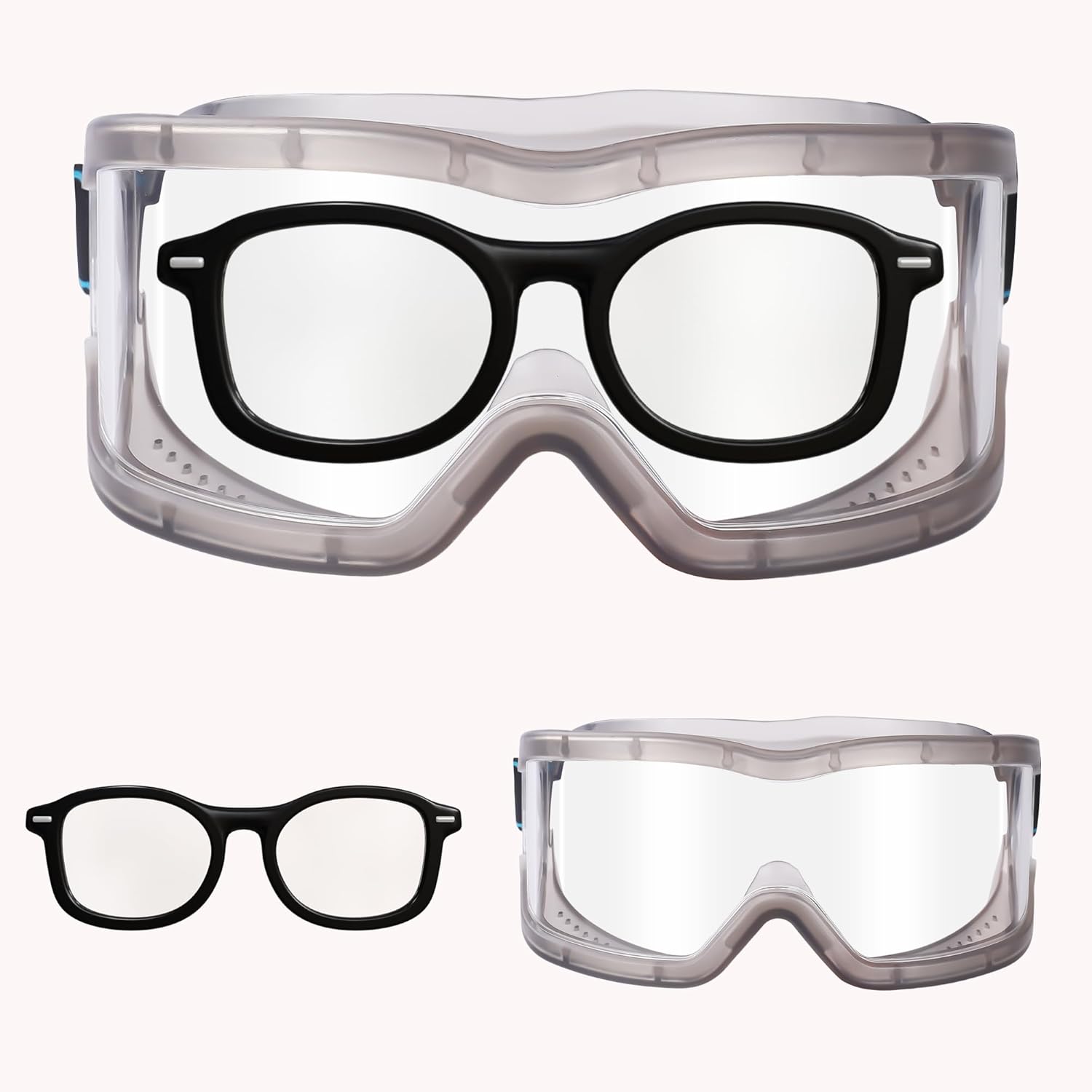 • 【SAFETY GOGGLES OVER GLASSES】Oversized frame, you can wear a variety of larger size myopia glasses in the goggles, safety glasses. Size: 6.3*3.15 inch