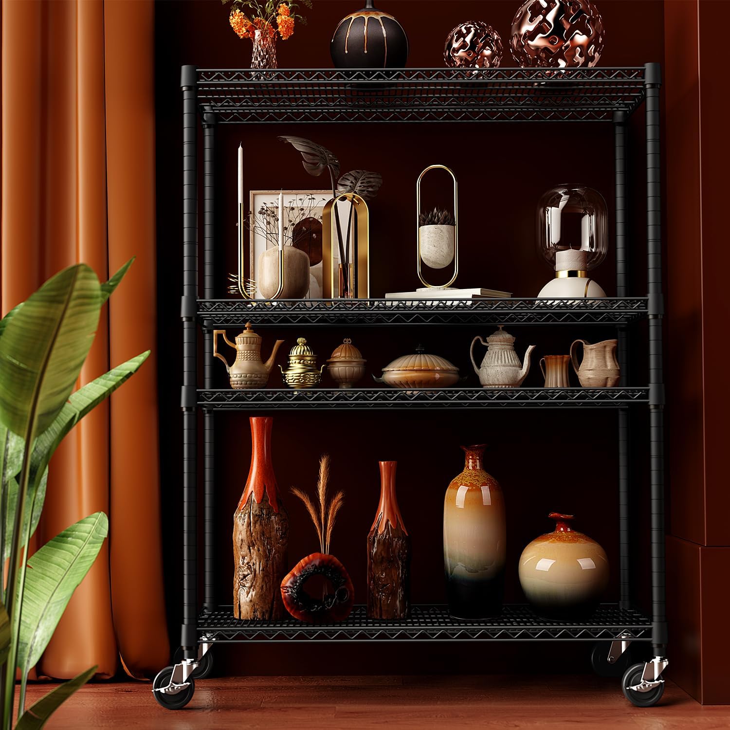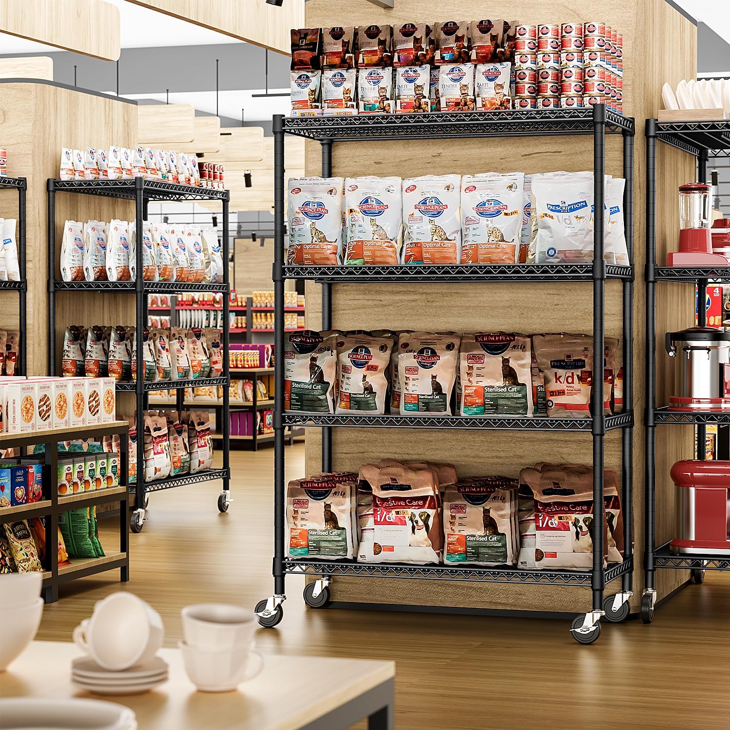 • COMMERCIAL GRADE HEAVY DUTY: Craft from study high-quality carbon steel and 25.4mm metal rods, each shelving unit has a maximum capacity of 660LBs on leveling feet, with a total capacity of 2200LBs (Approximately 530 LBs on wheels.)