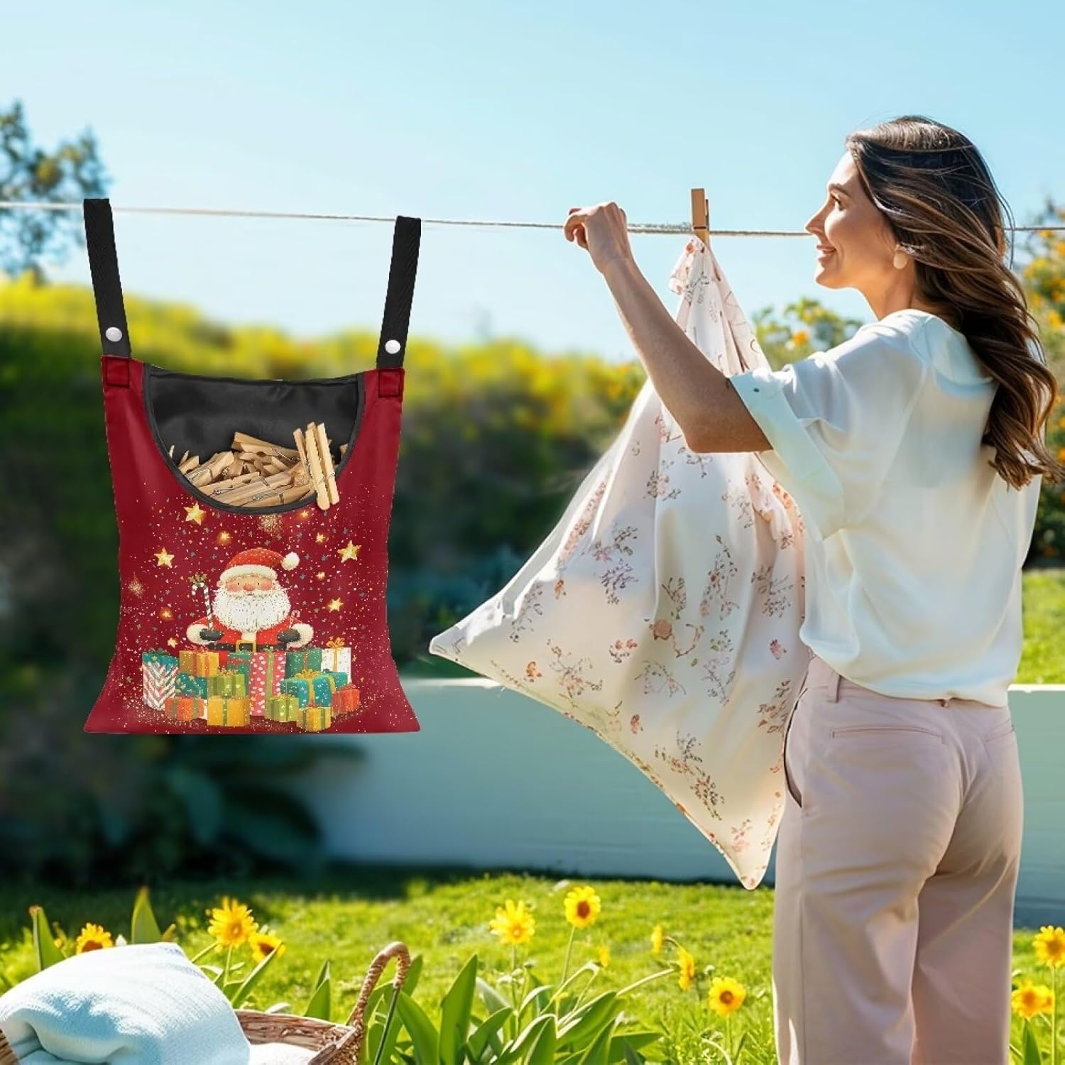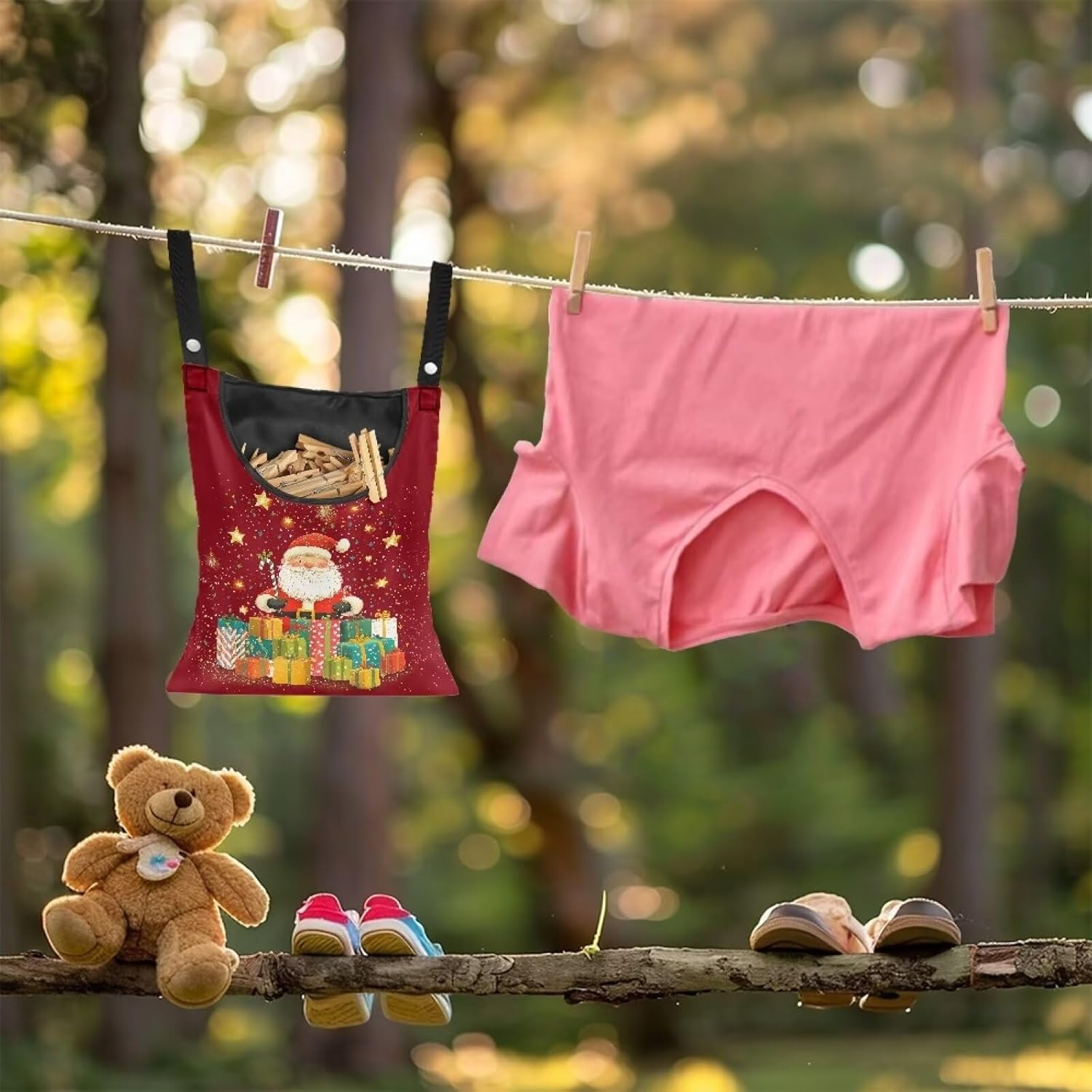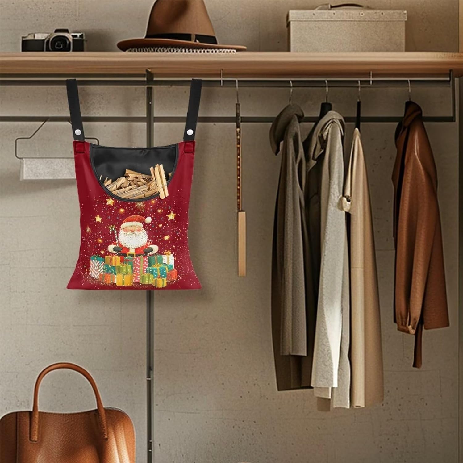 Christmas Santa Claus Clothespin Organizer Bag Shell Beach Clothespin Bags with Hanging Hook Waterproof Clothes Pin Storage Organizer with Large Opening Clothespin Bag