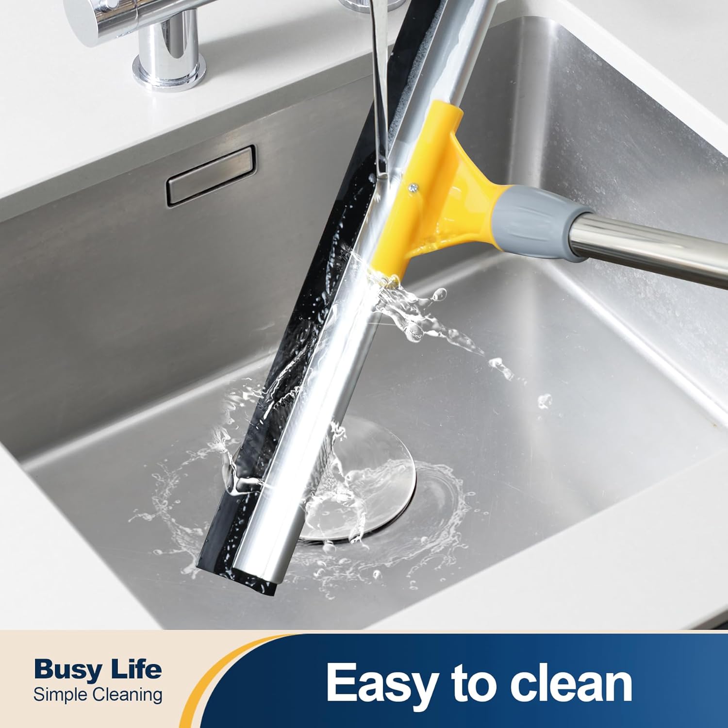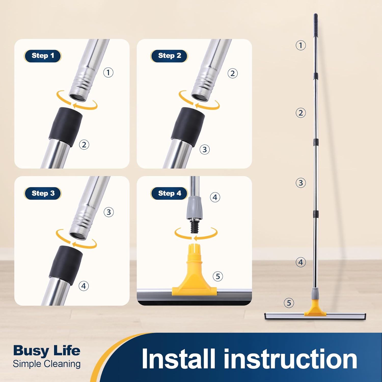 • Yocada 17.7" Floor Squeegee Rubber TPR Blade Scrubber Broom: The stainless pole length can be adjusted from 32.7 inches to 61.8 inches, you can just use poles to adjust. Achieve the good length with a simple snap, providing you with optimal control and maneuverability during your cleaning routine