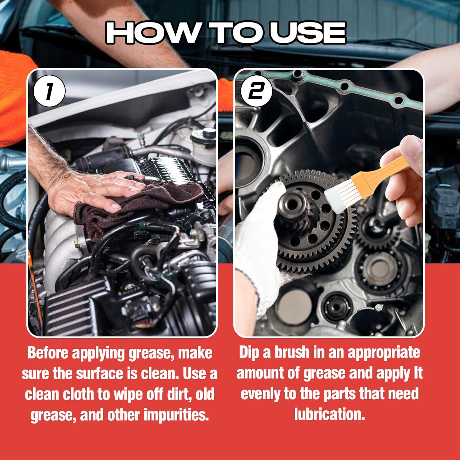 • Superior Metal-to-Metal Lubrication: White lithium grease effectively reduces friction and ensures smooth operation. Lithium grease is ideal for hinges, gears, bearings, chains, and other metal components.