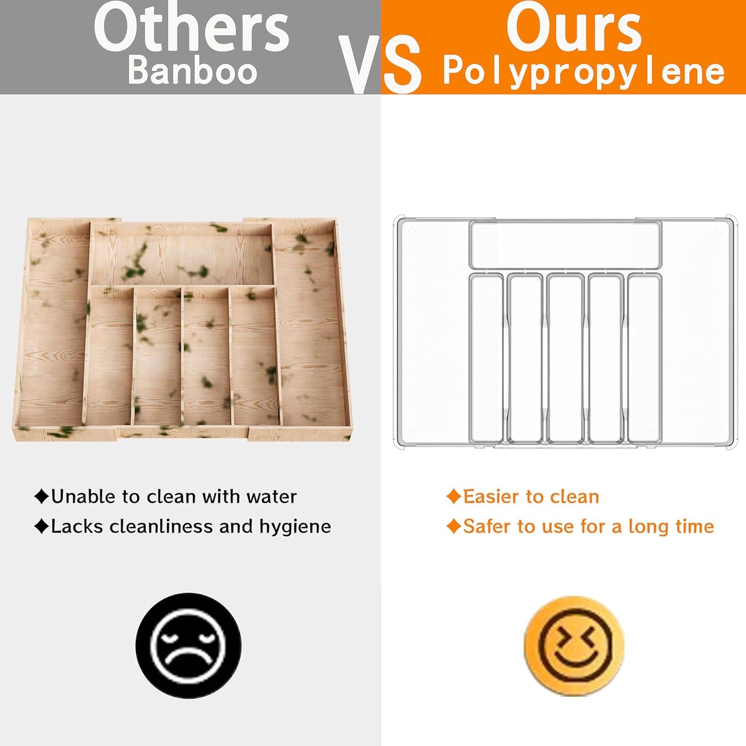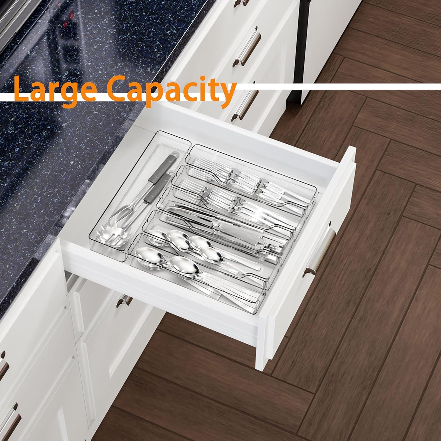 Silverware Drawer Organizer, Expandable Utensil Tray for Kitchen Drawers,BPA Free Flatware and Cutlery Holder,Adjustable Plastic Storage for Utensil like Spoons, Forks, Knives.Clear