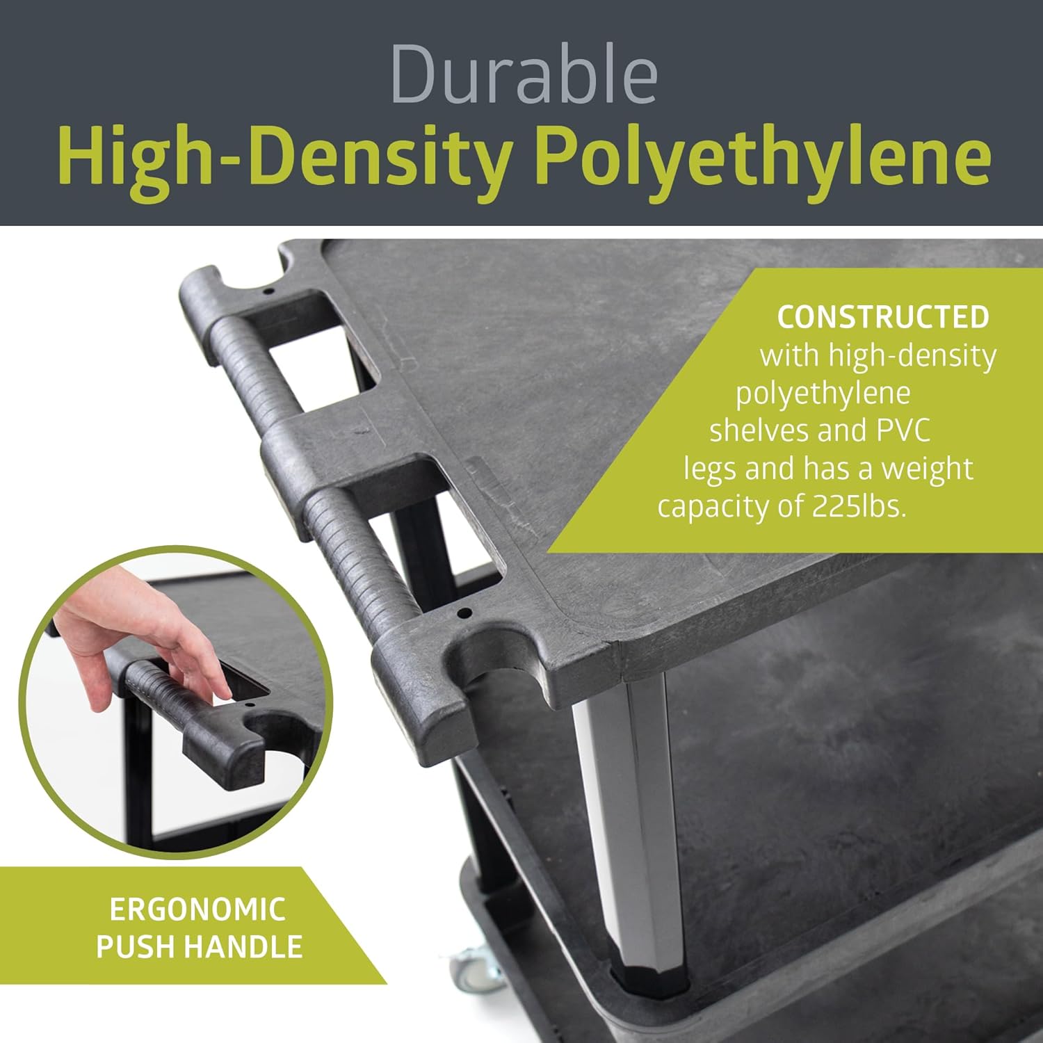• 3-SHELF MULTIPURPOSE MOBILE UTILITY CART: Multi-layer service utility cart with one flat shelf and two bins to secure office supplies, crafting goods, food, tools, and more