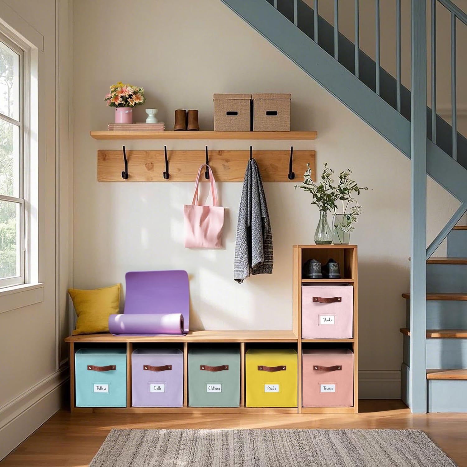 DECOMOMO Storage Bins, Cube Storage Bin with Labels, Fabric Storage Cubes for Shelves (10.5" x 11" / 6pcs, Rainbow)