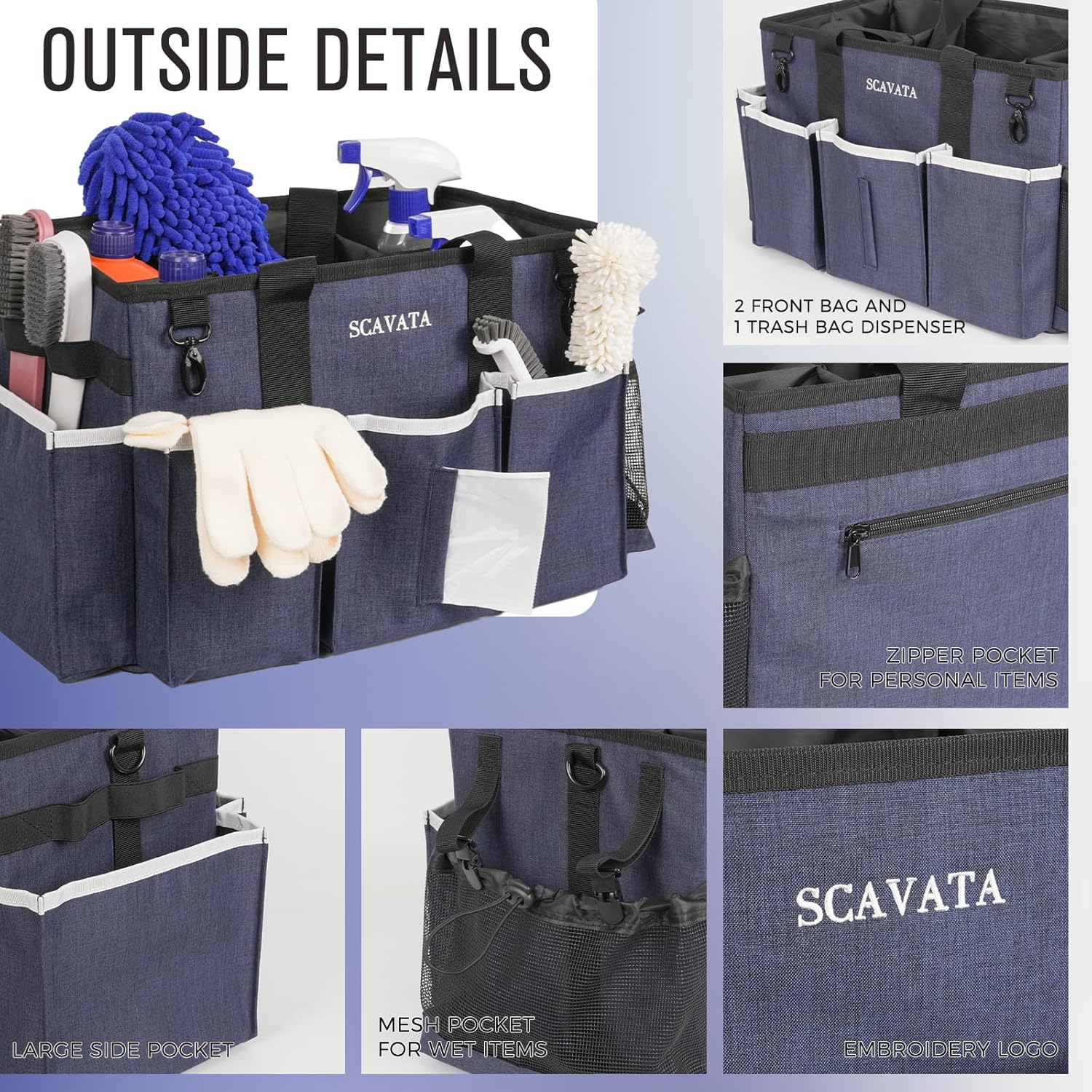 • Exquisite Details: The 5 inner compartments are large enough for organizing cleaning tools. 3 individual deep outer pockets, 1 mesh side pocket and 1 trash bag dispenser allow you storage and access of other cleaning tools. Also, securely zipped pocket is design for safely storing your important items