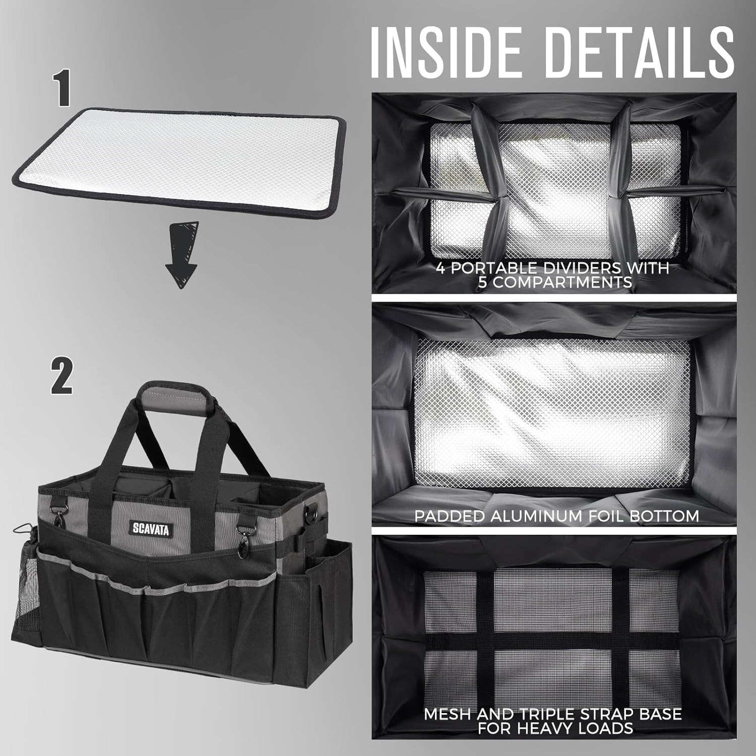 Wearable Cleaning Caddy Bag, Cleaning Caddy Supplies Organizer with Handle & Shoulder Straps for Housekeepers, Under Sink & Car Cleaning Tool Organizers with 4 Foldable Divider (DarkGrey)