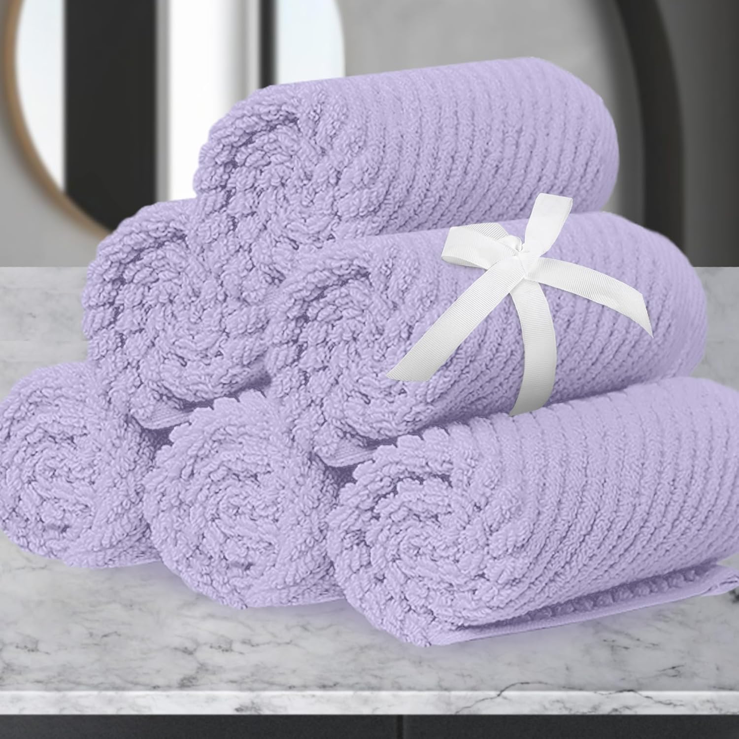 Washcloths for Showering, 6PC Large 13"x13" - Lightweight | Quick Dry | Soft | Absorbent, Thick Cotton Washcloths for Face, Purple Hand Towel Set, Lavender Face Towel for Hotel, Bathroom Essentials