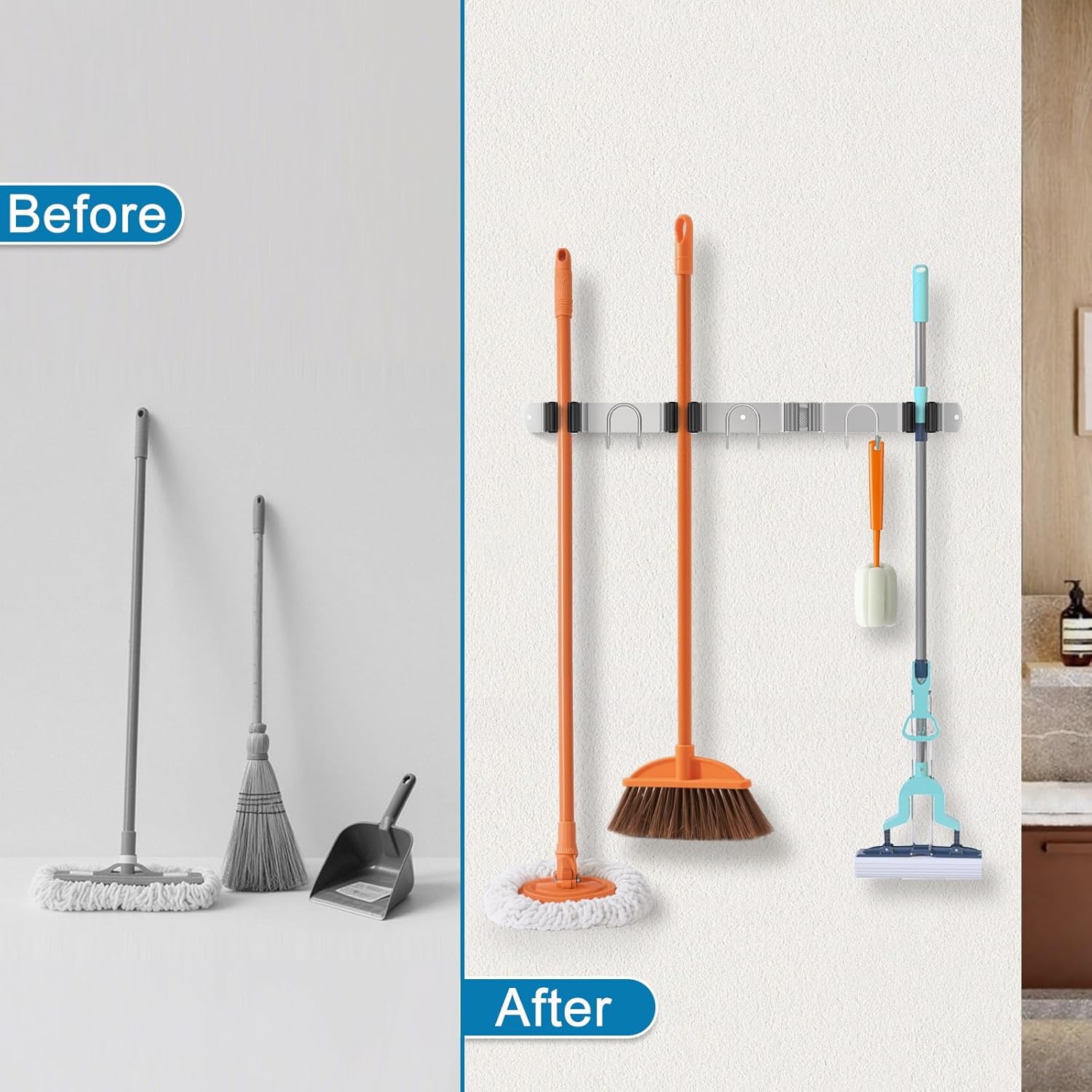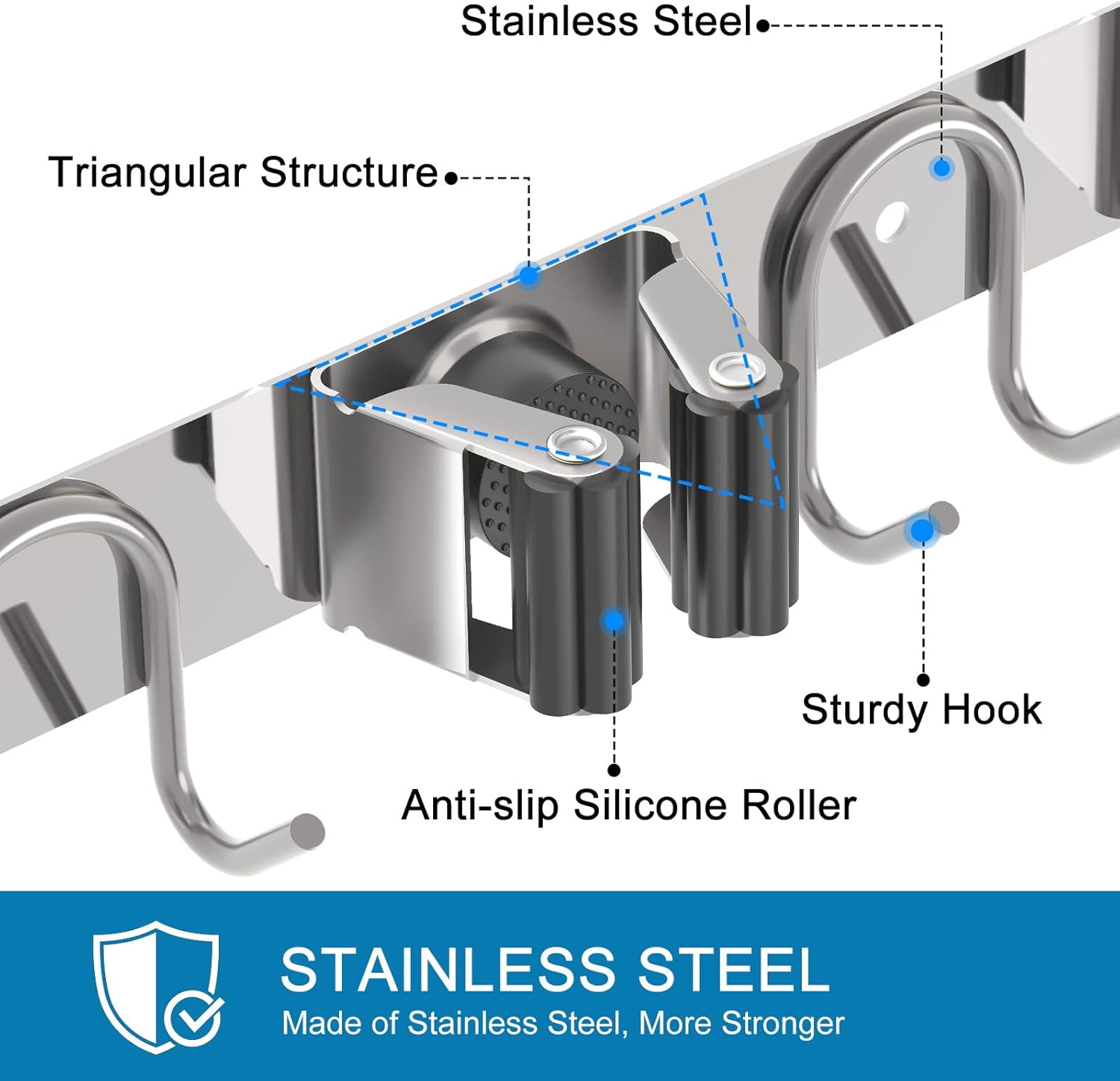 • Premium Stainless Steel Broom Holder: Built with ultra-durable, rust-proof stainless steel for exceptional strength and longevity. Resists damage and thrives in damp environments, no breakage worries