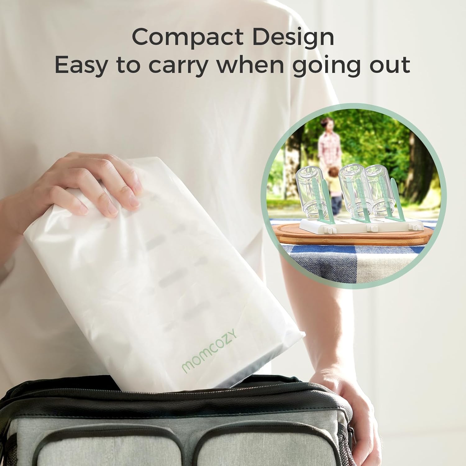 • Large Adjustable Capacity:The Momcozy baby bottle drying rack holds up to 18 bottles and nipples. Unlike fixed racks, its DIY adjustable design lets you customize the layout based on daily feeding needs, making bottle drying faster and keeping your counter organized.