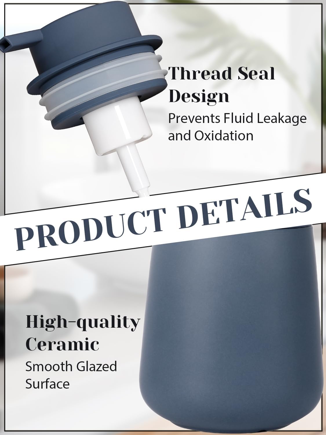 • Easy to Press: The ceramic hand soap dispenser uses a large area press pump made of premium plastic, we can easily squeeze out the soap, the nozzle down is not easy to leave excess soap