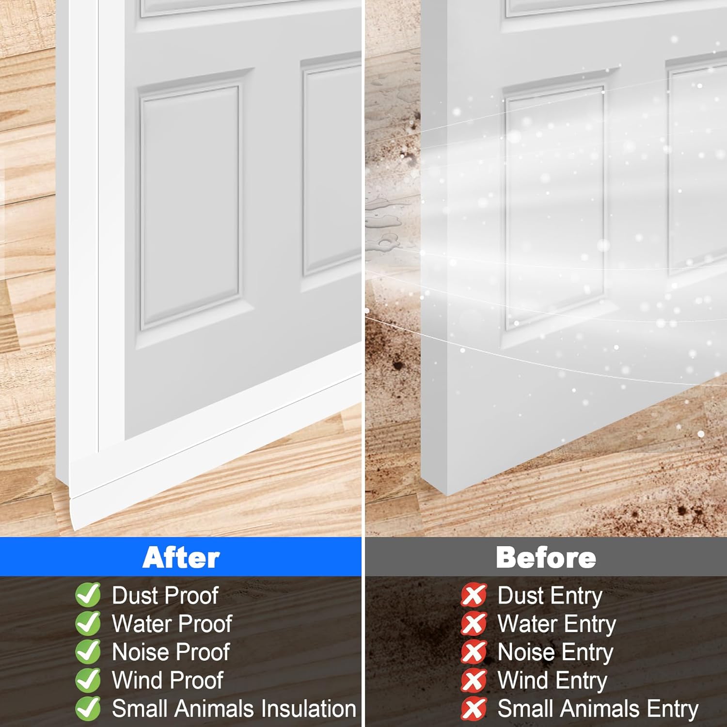 • 【Effective Blocking】Full door draft stopper is windproof, rainproof, dustproof, soundproof and anti-collision. Anti draft door seal can avoid cold wind or hot air leakage through the gap of windows and doors. Strip not only saves you energy and money, but also provides you with a clean, quiet home at a comfortable temperature