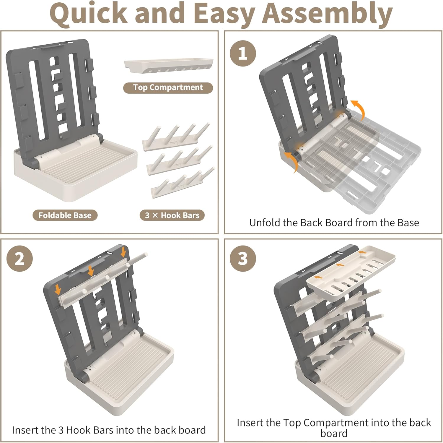 - 【Sturdy & Safe Materials】 Made from BPA-free, food-grade materials, this drying rack is not only safe for your baby but also built to withstand daily use. Compact in size at 8.8"D x 11.3"W x 13.7"H, it fits neatly in your kitchen.