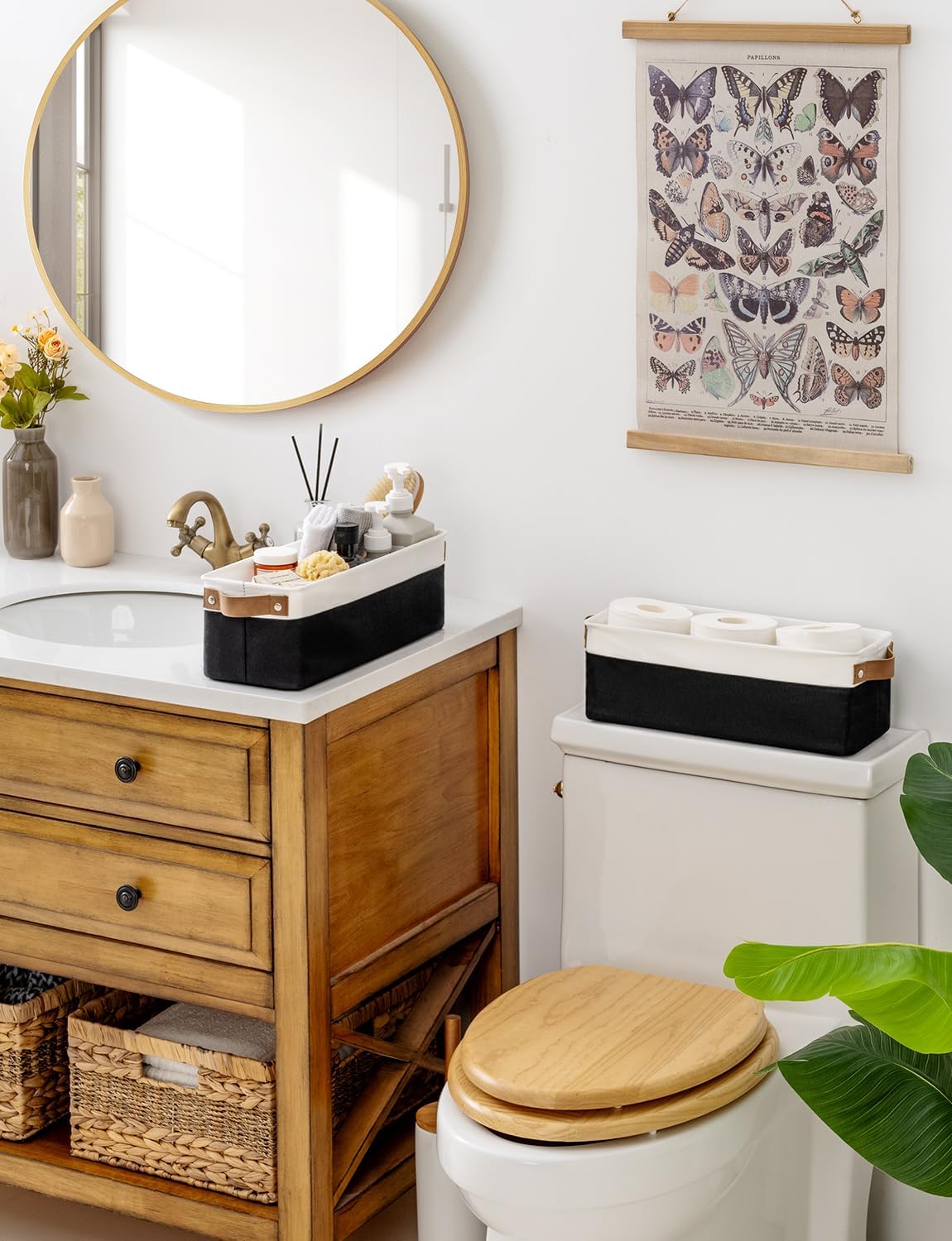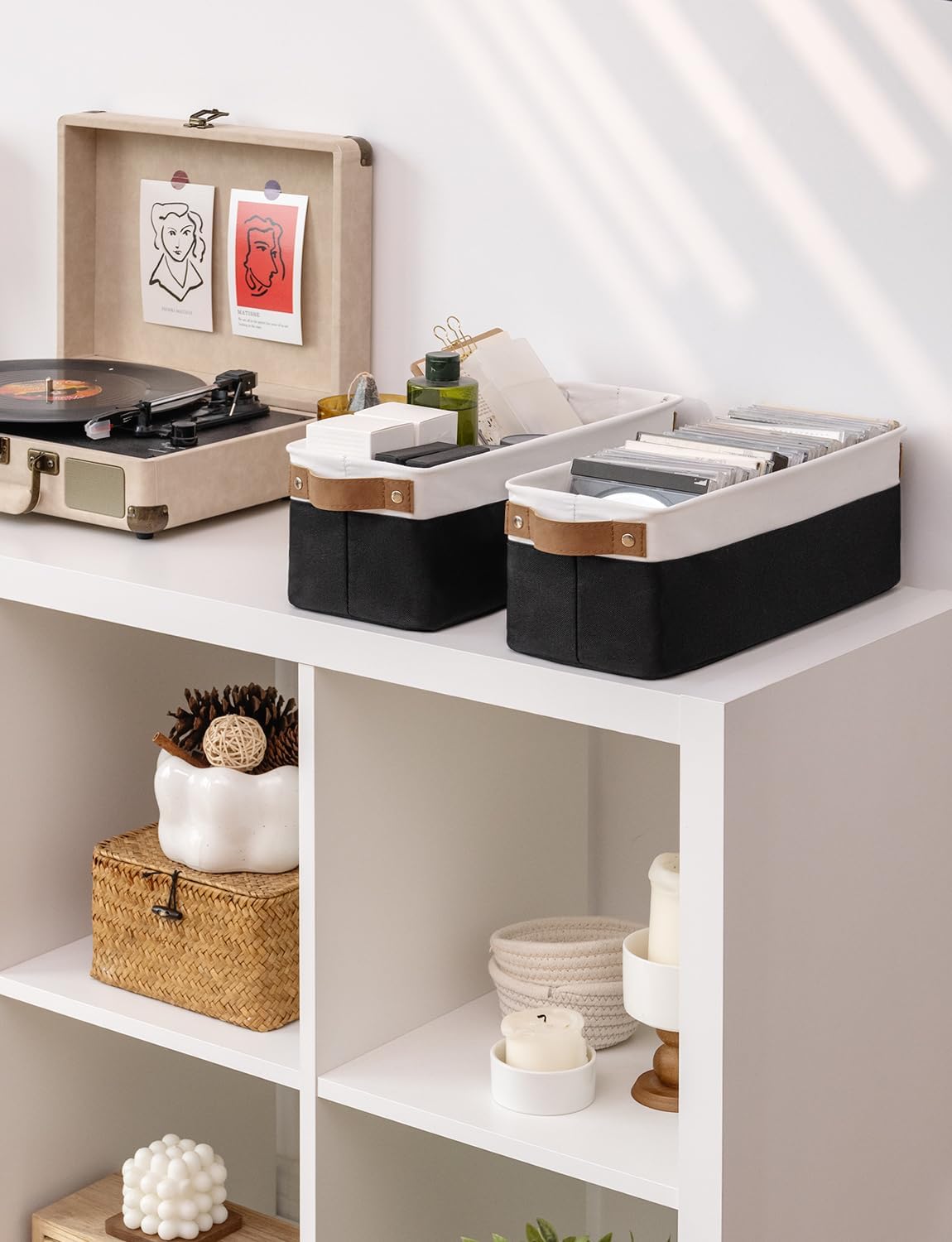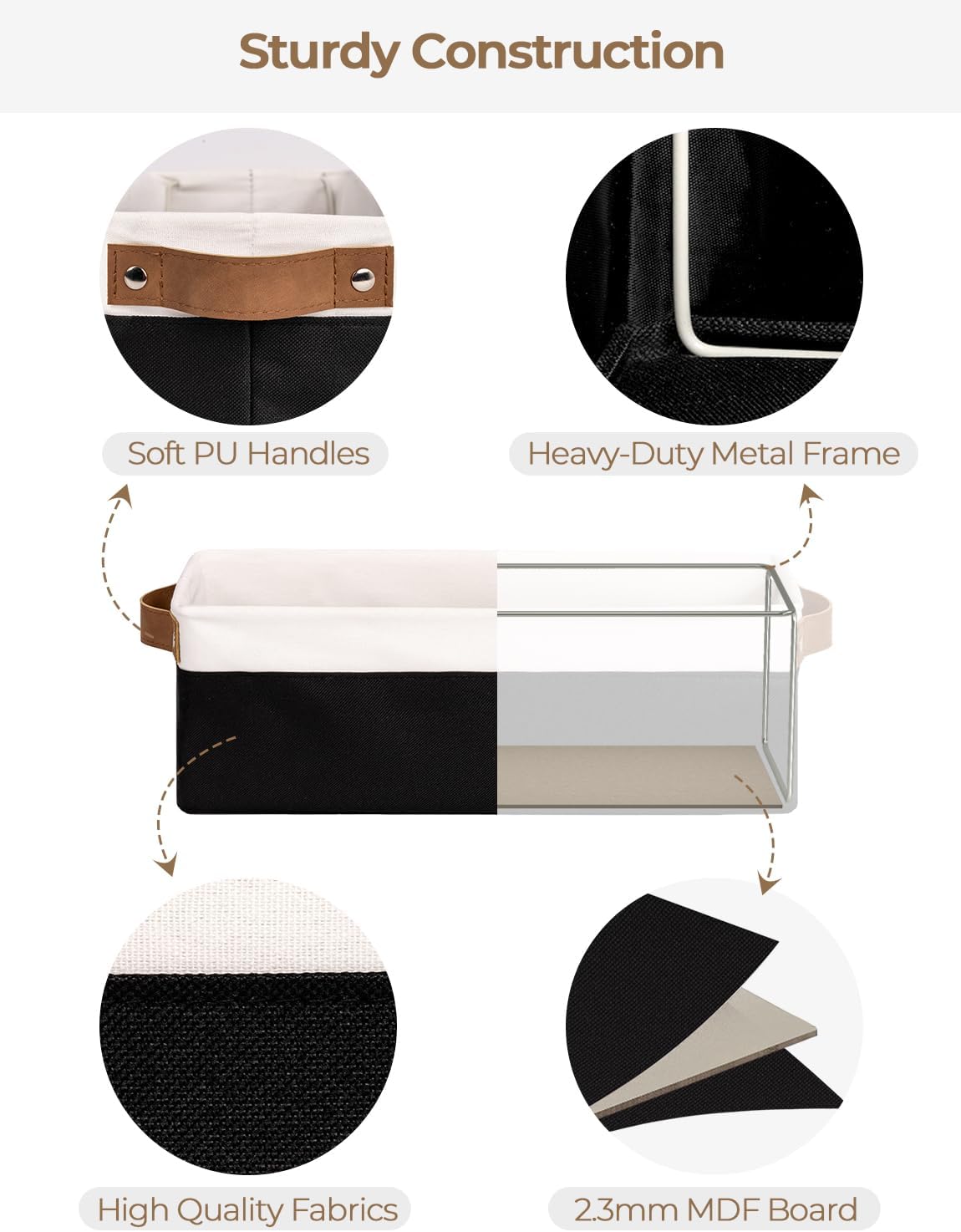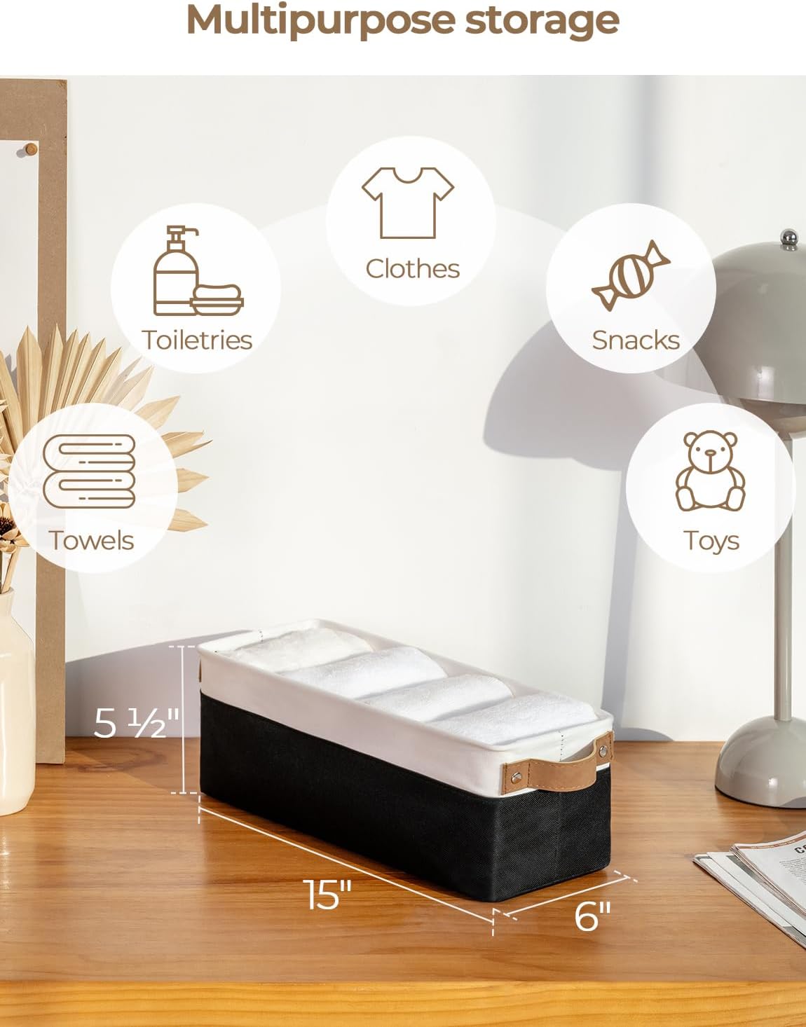 StorageWorks Narrow Storage Bins, Small Basket for Closet and Shelves, Fabric Organizer with Handles, Toilet Paper Storage, Black and White, 2-Pack