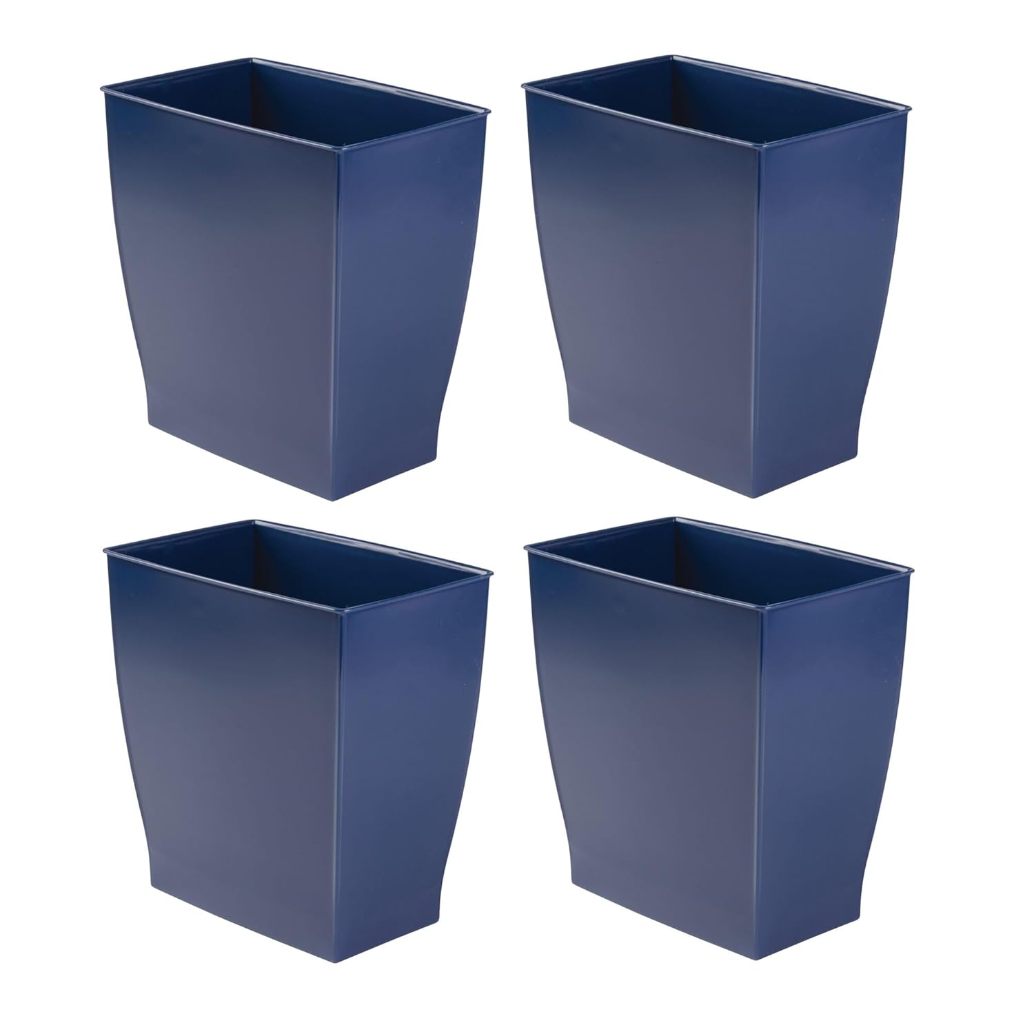 iDesign Small Rectangular Bathroom Trash Cans - Set of 4 - Navy Blue - Made in USA