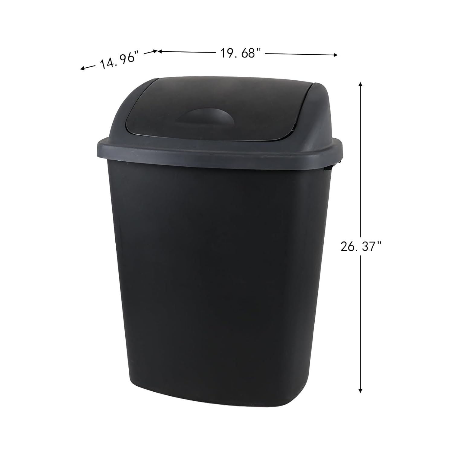 • Includes 4 swing lid trash cans, each measuring: 19.68" x 14.96" x 26.37"
