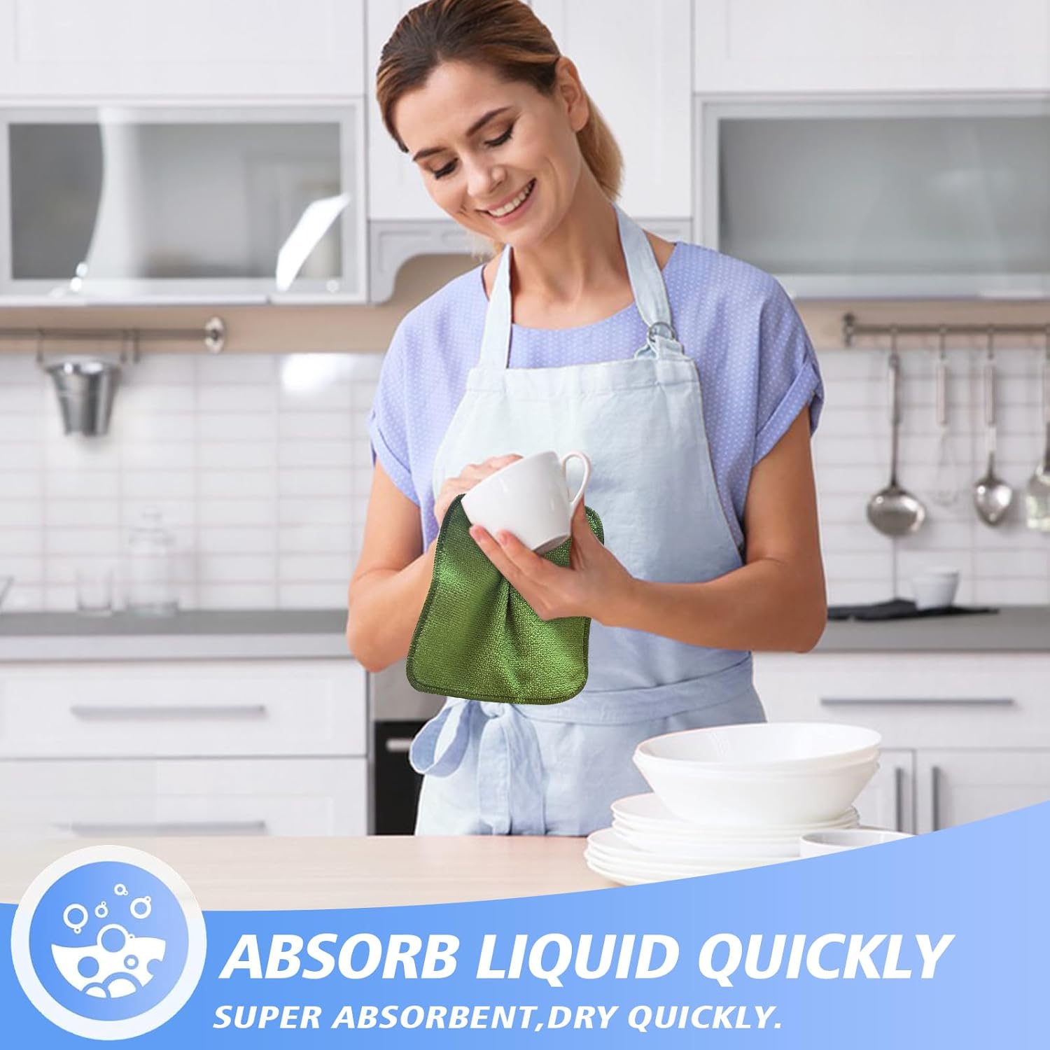 • ABSORB LIQUID QUICKLY WASHCLOTH FOR KITCHEN: These dish cloths are super absorbent, dry quickly, and any stains or grime from wiping counters washes right out with warm sopy water. Works well for buffing hard water spots from wet dishes