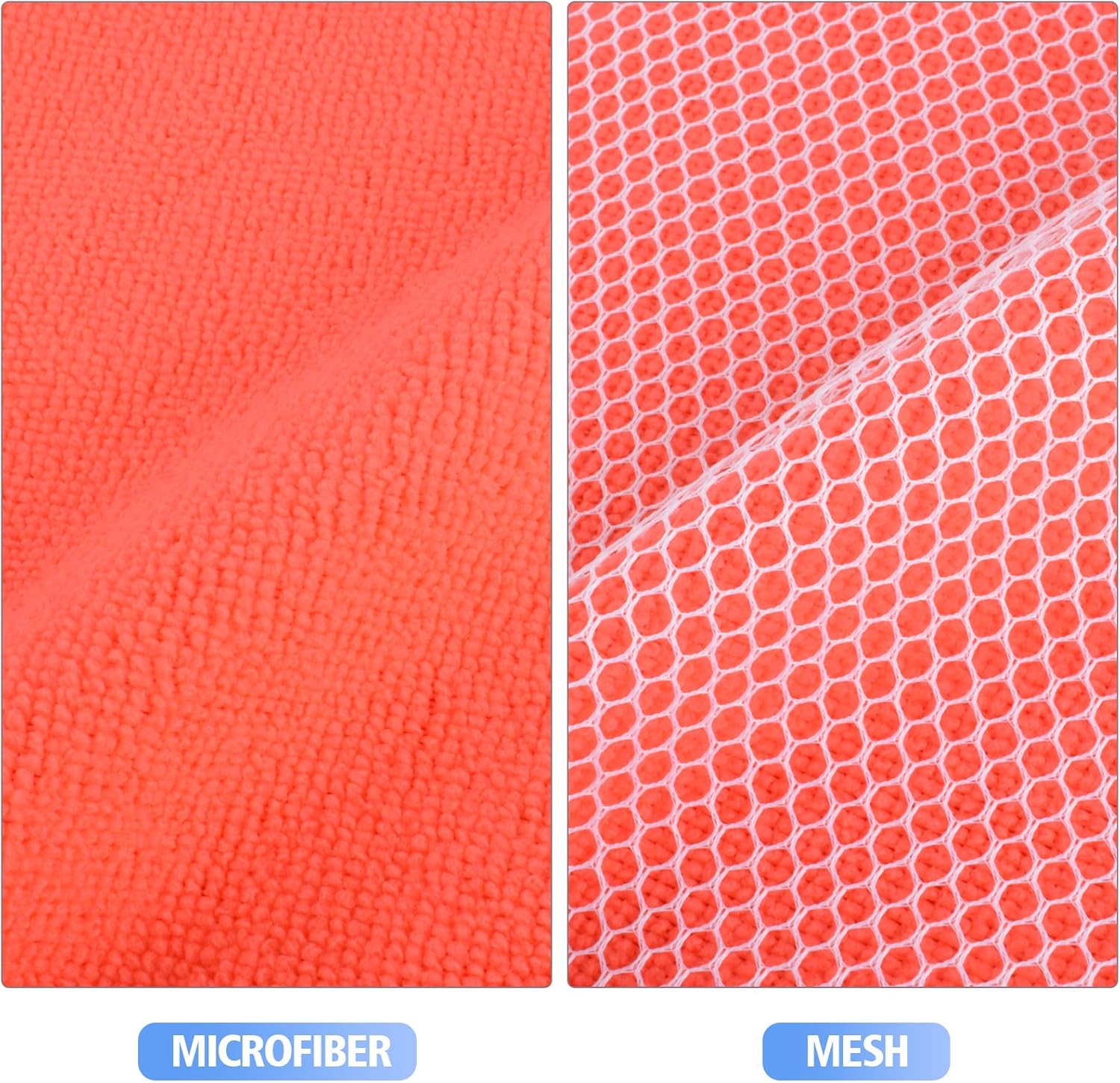 • DISH RAGS FOR KITCHEN CLEANING WITH POLY SCOUR SCRUBBING SIDE: One side is microfiber and the other side is mesh. The microfiber side works well at getting finger spots off the stainless steel appliances and the glass front of fridge or stove, microwave; the scrubby side is good for cleaning stuck on food without having to grab your scraper and does not scratch delicate surfaces either