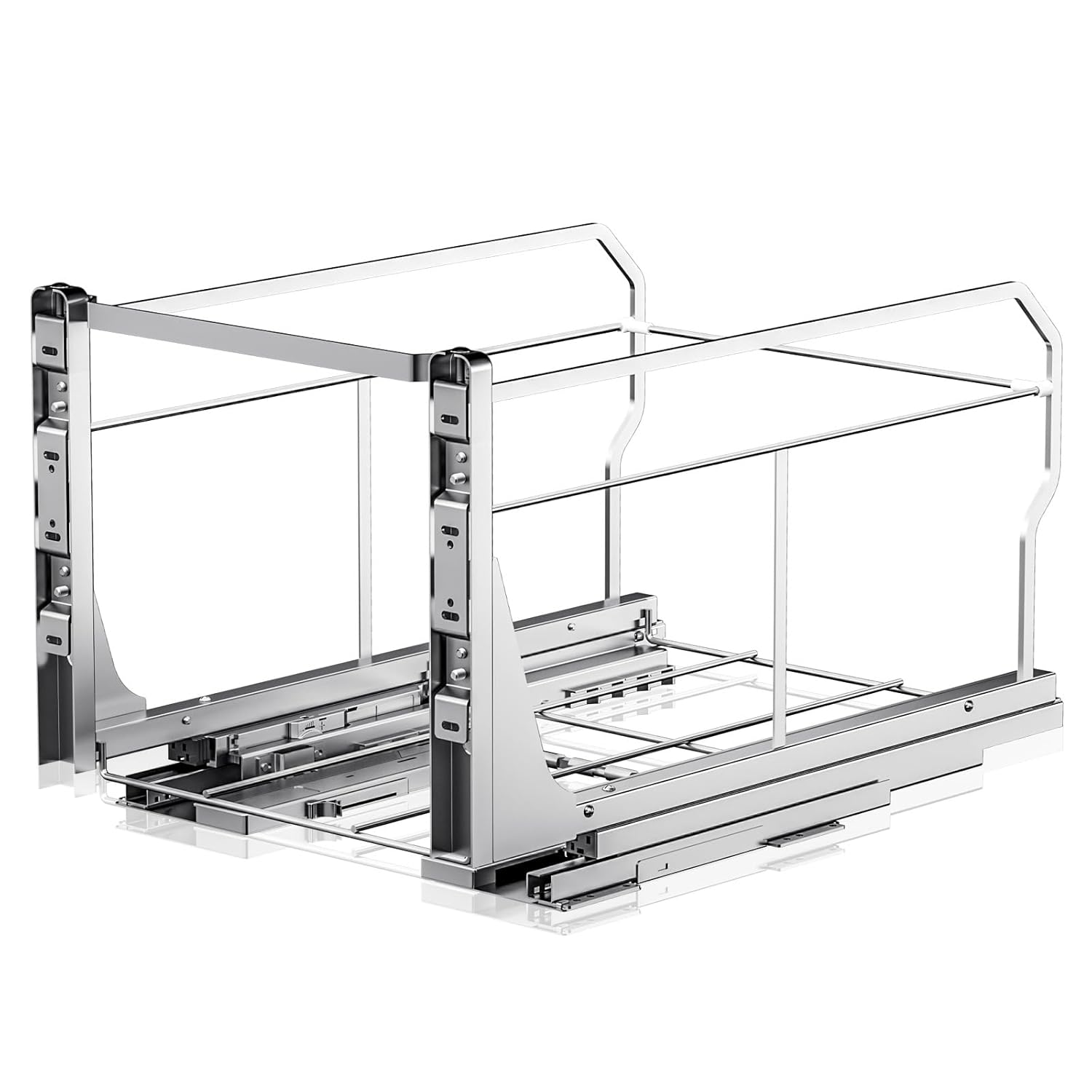 Insputer Double Pull Out Trash Can Under Cabinet with Push to Open Slides, Heavy Duty Under Sink Garbage Can Kit for Kitchen, Not Include Bin, Require 18" W X 24" D Cabinet, has Installation Video