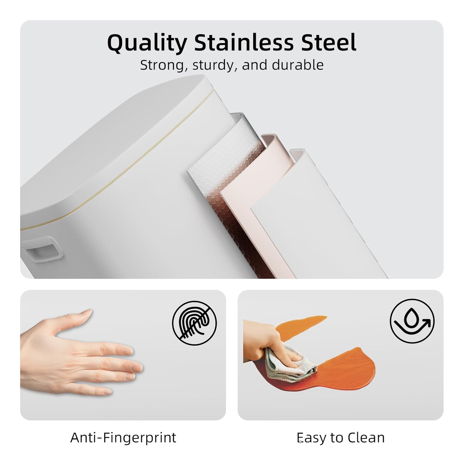 • โœจ Fingerprint-Proof Stainless Steel: Sleek brushed steel resists fingerprints, water, and stainsโ€”simply wipe clean for a spotless look. Durable construction stands up to daily use in kitchen, bathroom, or office.