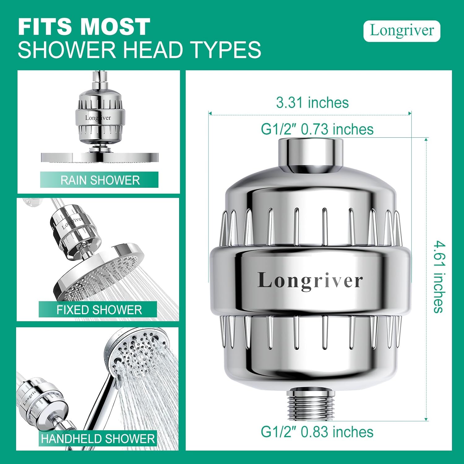 - Easy Installation: Even those with no installation experience can finish setting it up in less than 2 minutes. What’s more, the R7 Shower Filter is universally compatible with G1/2 pipes (a common standard for bathroom plumbing) and standard American showerheads—no need to worry about mismatches