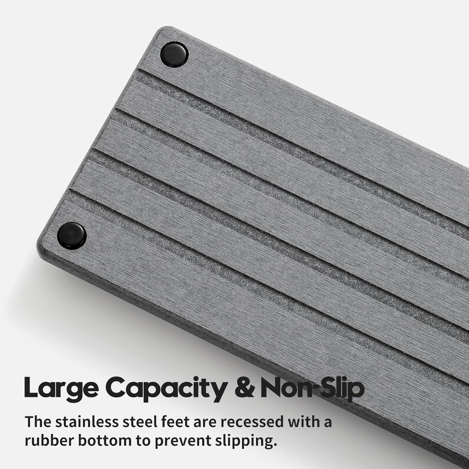 • 【Size and Capacity】This stone sink tray has a larger capacity due to the recessed feet. The 4 feet are made of high-grade stainless steel material with non-slip rubber, rust-proof. Size: 12"L x 5"W x 1"H