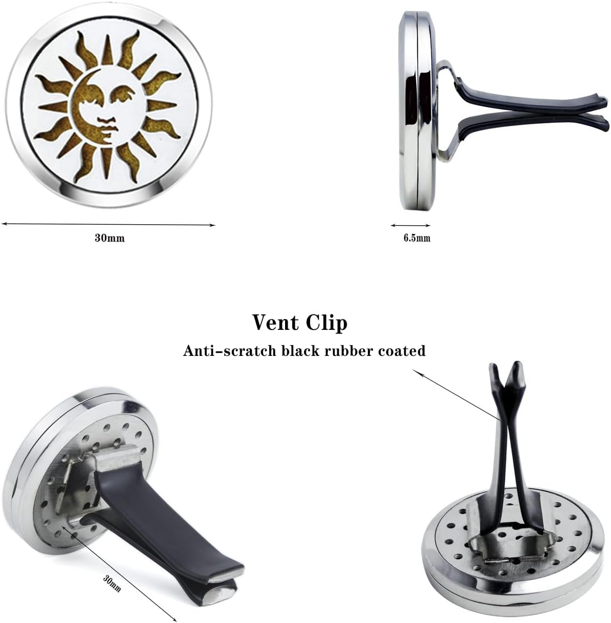 • 【Material 】High quality 316L stainless steel 30mm car diffuser vent clip, solid and smooth, anti-corrosion, easy to clean, we pair our diffuser car vent with reusable 10 color refill pads. Complete with a solid back and two magnets for a secure close, you’ll never have to worry about getting essential Oil all over your car.