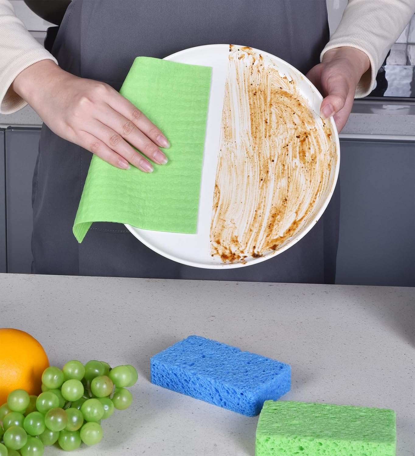 • 【Reusable & Long-sasting】: The compressed dish sponges and Swedish dish cloths are multi-purpose use with magic absorbent, durable, reusable and long-lasting.
