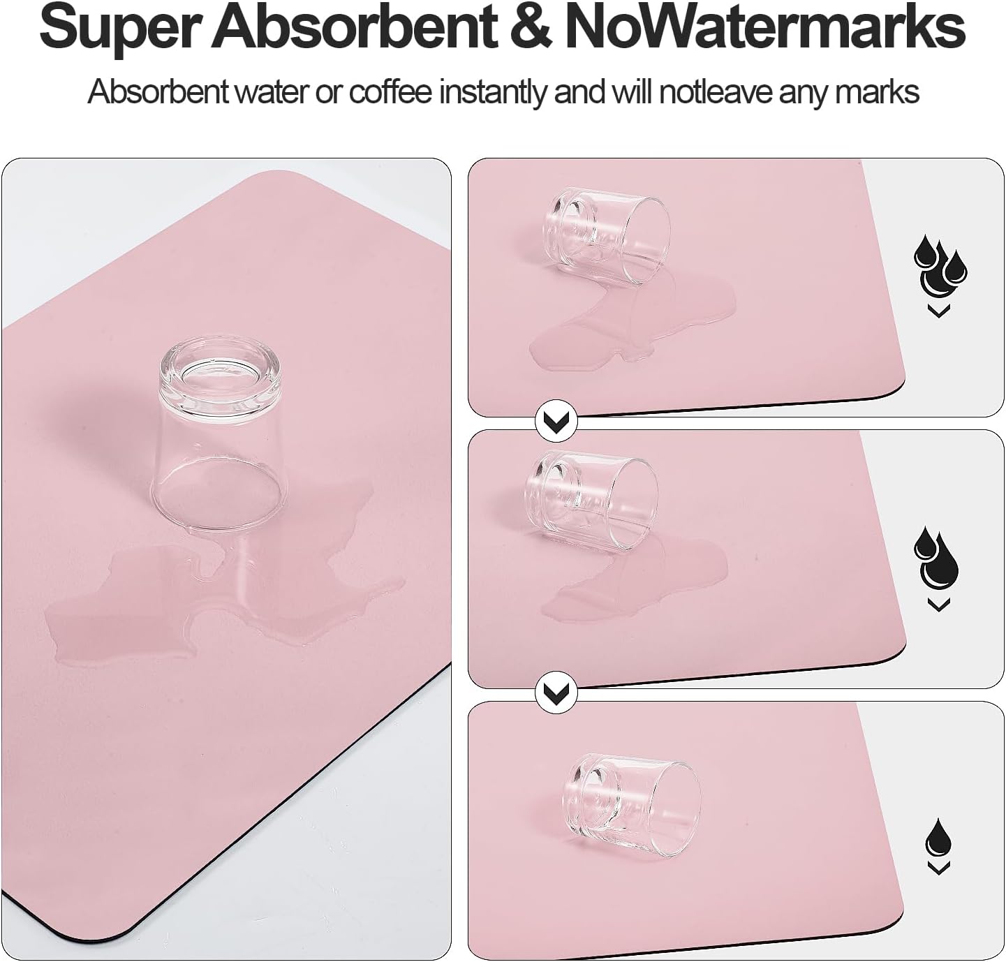 • 【Quick Absorption】 The soft diatomite dish drying mat instantly absorbs any liquid without staining your countertop.