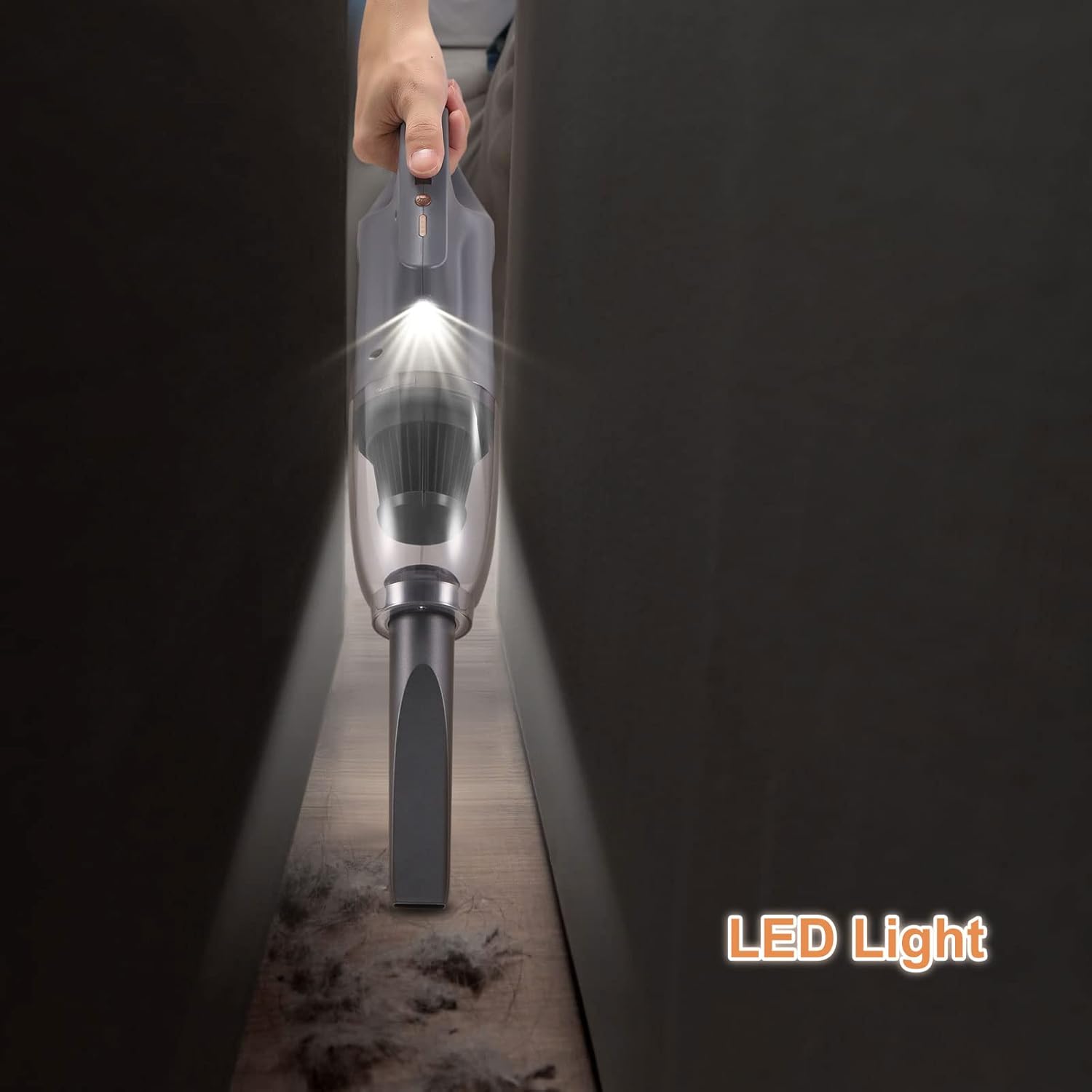 - {LED Light Design}: The bright LED light on the car vacuum handheld is more suitable for dark or corner cleaning and can better help clean deep corners or crevices.
