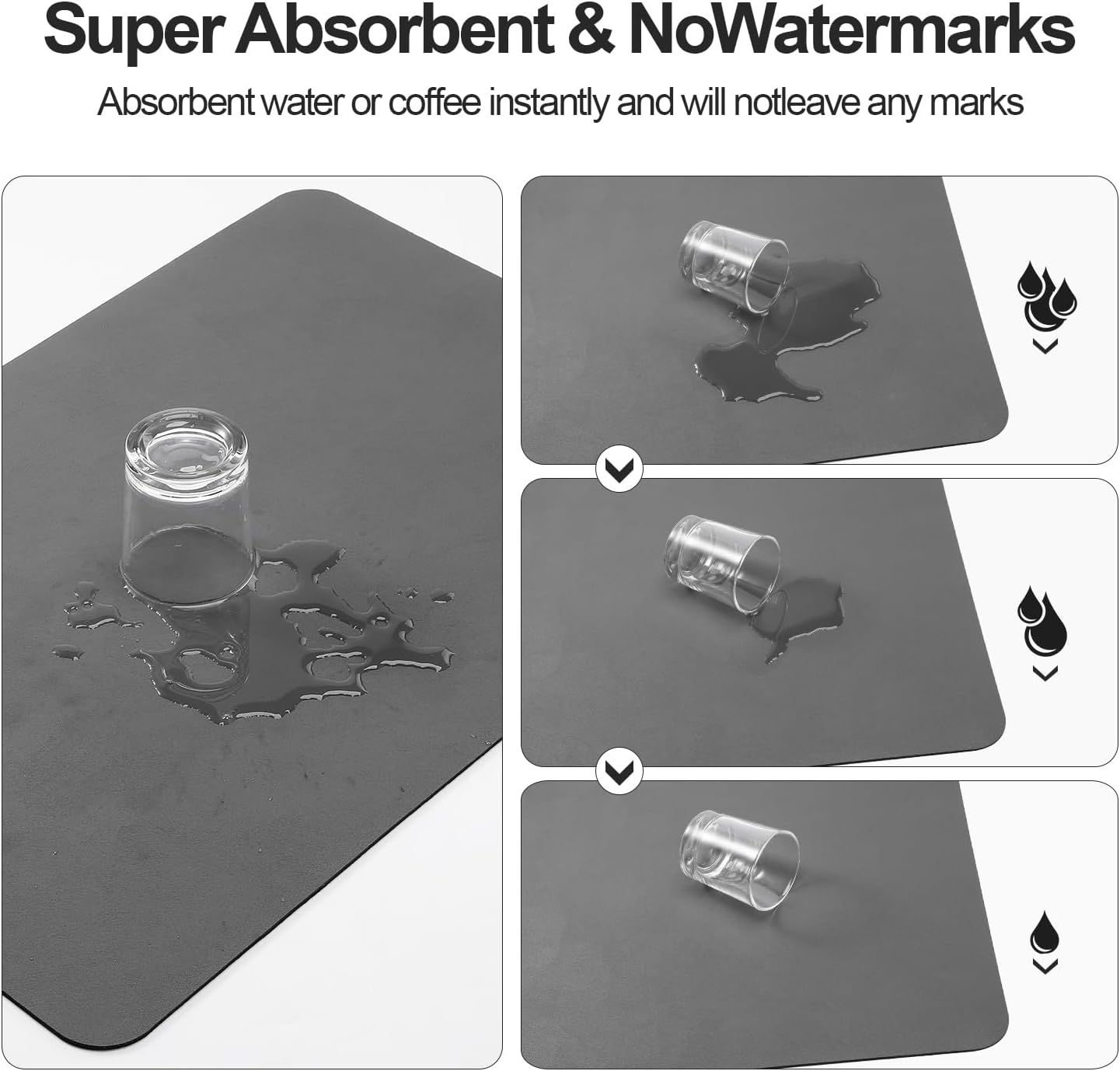 • 【Quick Absorption】 The soft diatomite dish drying mat instantly absorbs any liquid without staining your countertop.