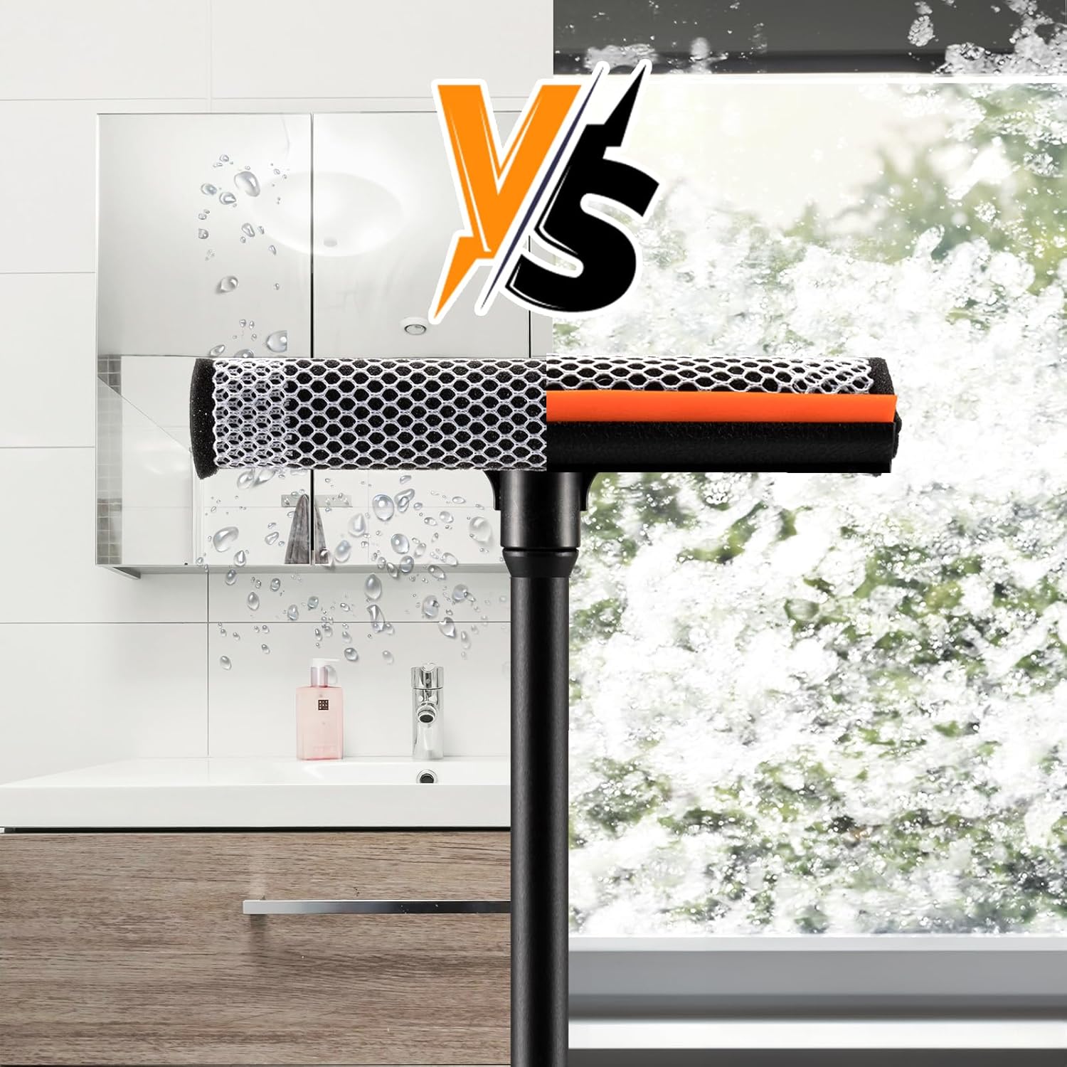 2 in1 Window Squeegee for Car, Window Cleaner with 16inch Long Handle,Sponge Car Window Squeegee for Gas Station, Glass,Shower,Outdoor High Window Cleaning