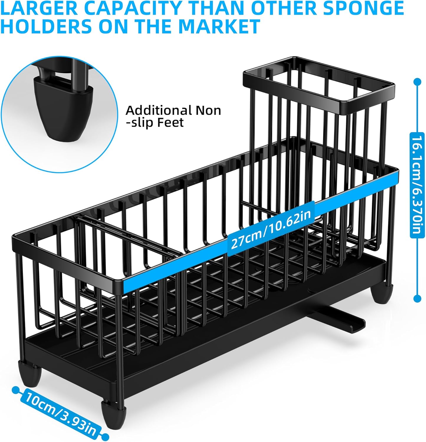 - 【REASONABLE PARTITION DESIGN】The sponge holder for kitchen sink adopts an ergonomic partition design, which can have 3 independent storage spaces, and different items are placed in different areas. Make full use of every inch of space to make your kitchen look cleaner.