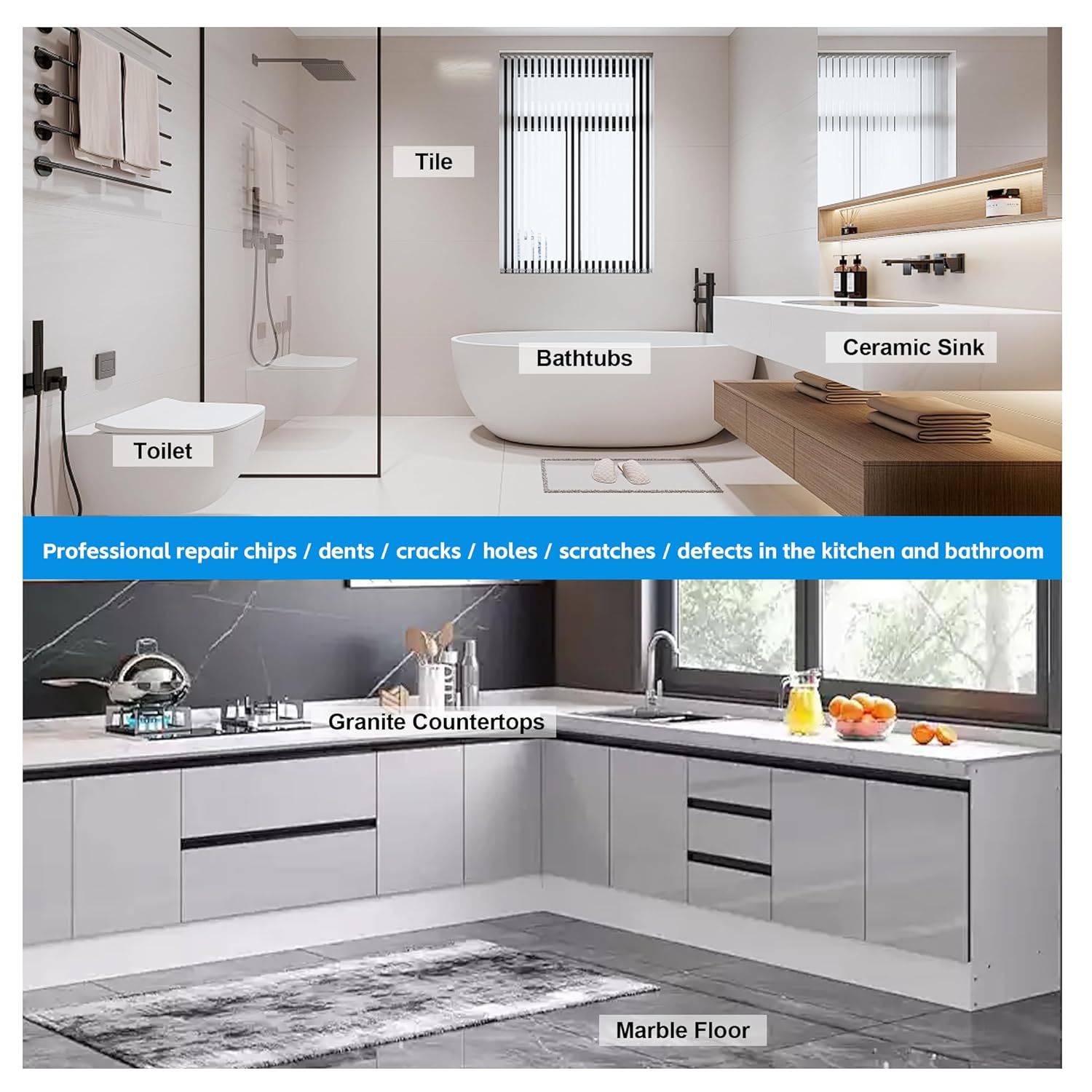 • Durable and Waterproof Finish – Once fully cured in 12 hours, the repaired area becomes as hard and resilient as the original surface. It provides long-lasting protection against moisture, stains, and wear, ensuring your surfaces remain flawless over time.