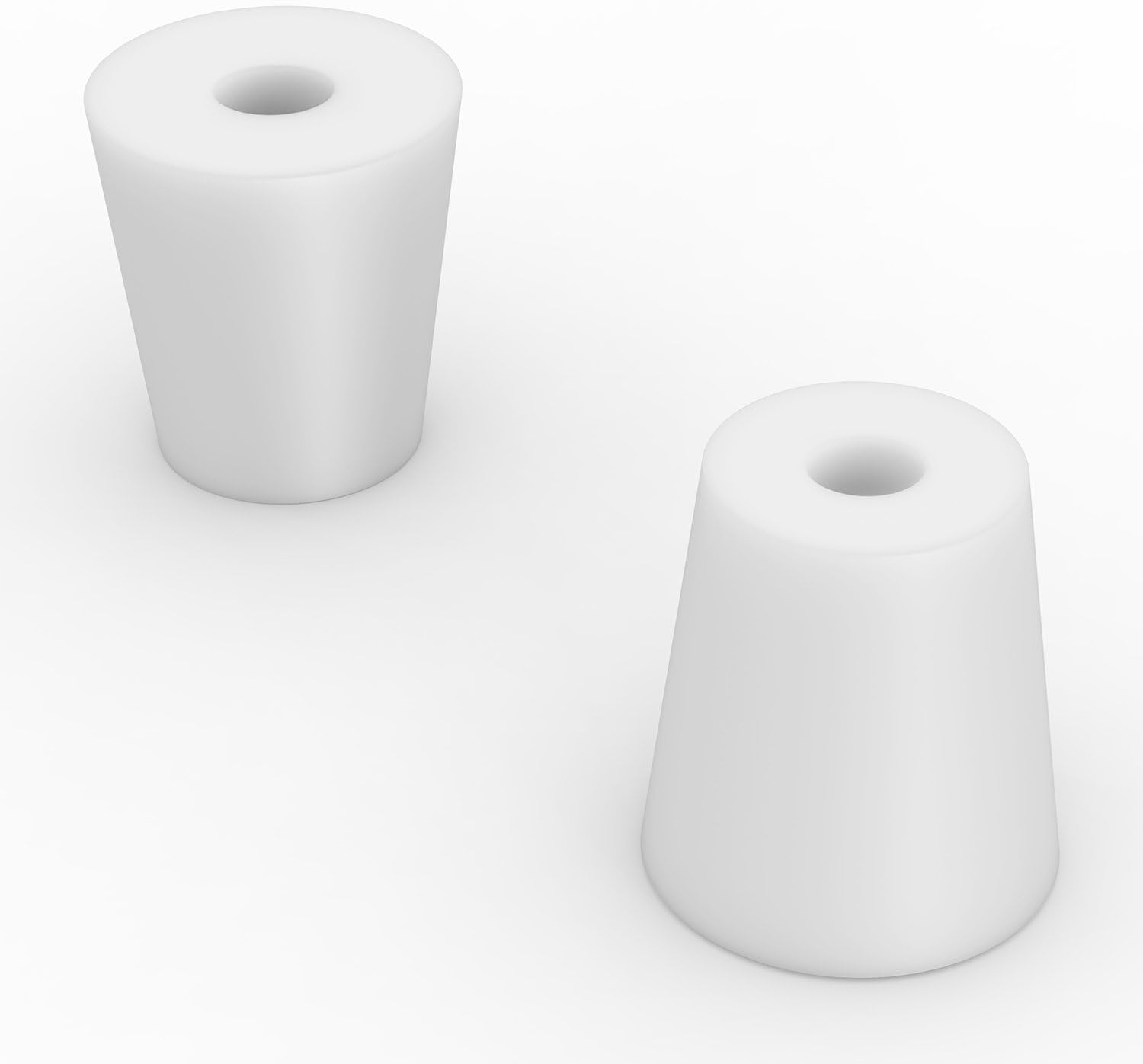 Labasics 5-Pack 4# Single-Hole Silicone Stoppers, White Tapered Lab Seal Stoppers with 0.31" Hole, Durable and Reusable Silicone Plugs for Laboratory Glassware, Airtight Sealing, and Experiments
