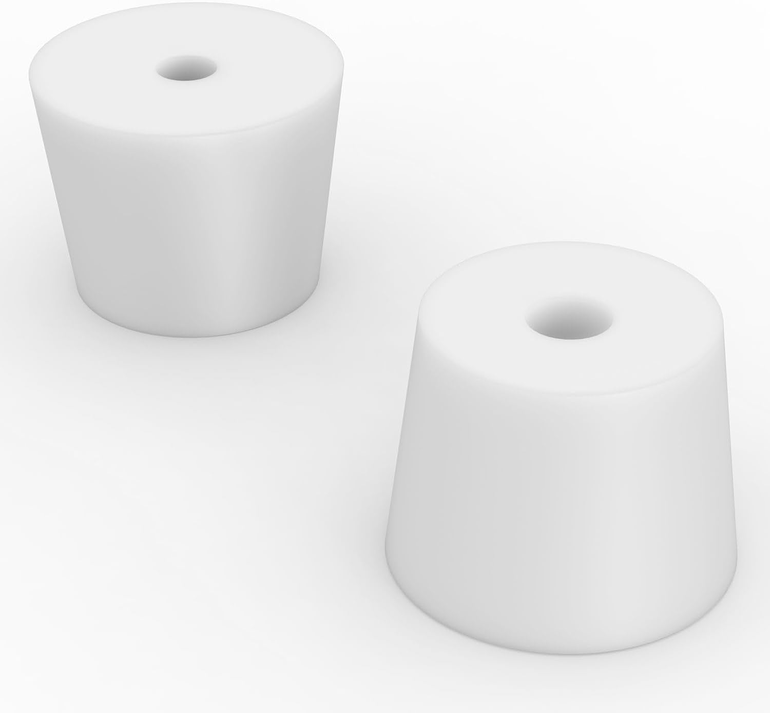 Labasics 5-Pack 9# Single-Hole Silicone Stoppers, White Tapered Lab Seal Stoppers with 0.31" Hole, Durable and Reusable Silicone Plugs for Laboratory Glassware, Airtight Sealing, and Experiments