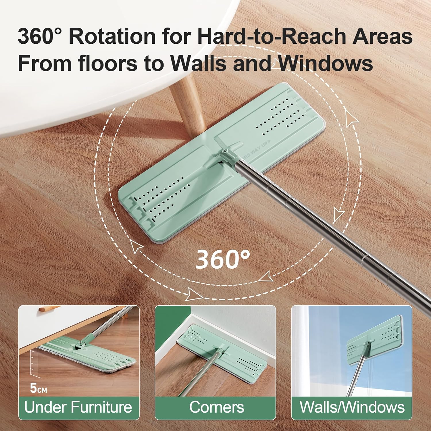 • [Extended Microfiber Mop] With 360°rotation and bigger mop head, the flat mop can reach to any corners, those "under-the-whatever" and more wider places for much faster cleaning job! The adjustable Stainless Steel Handles can be extended from 26.5 to 60.0 inches, great for wet dry mops or dust mops for wall cleaning