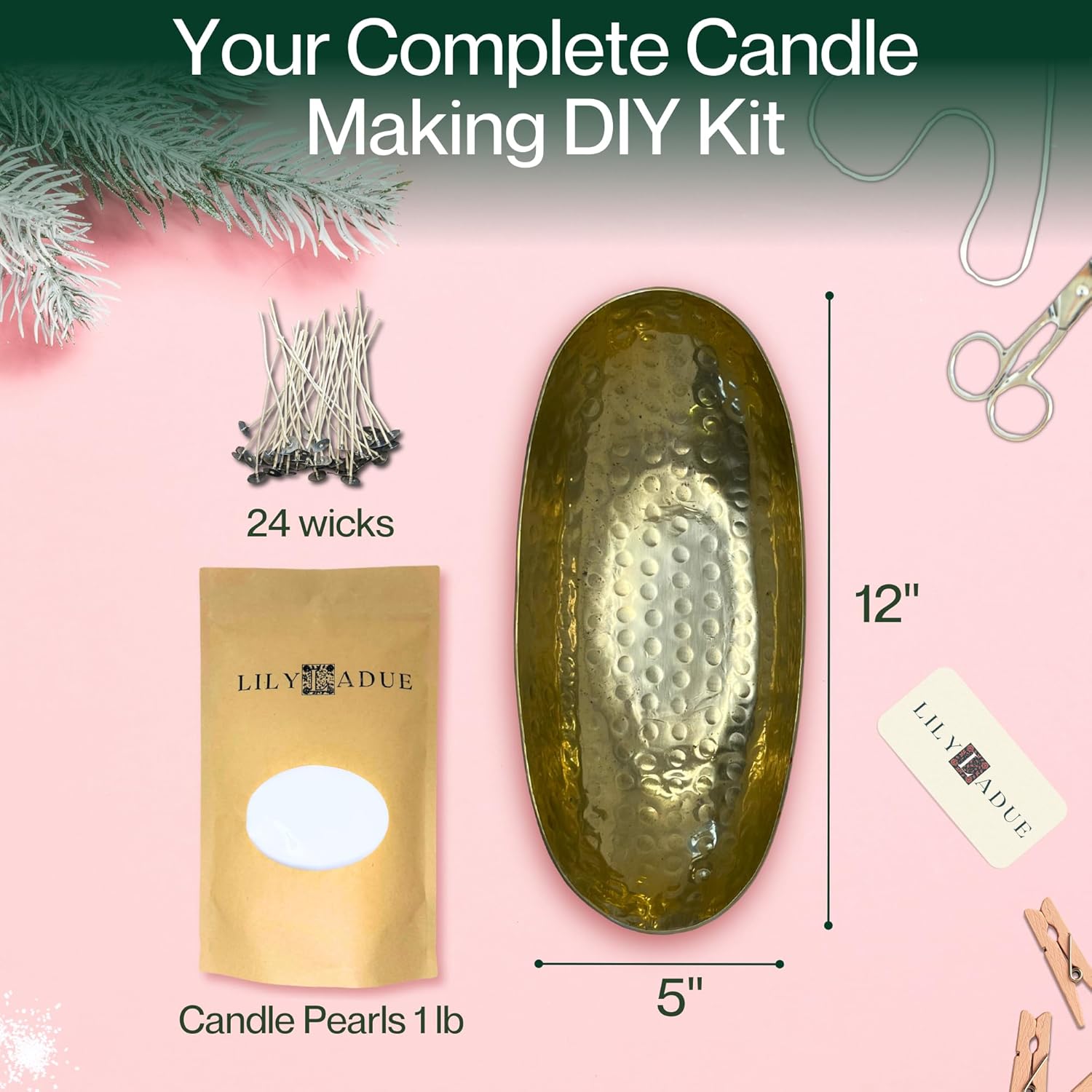 LILY LADUE Sand Candle Kit - 1Lb/16Oz Pearled Candles Sand and Wicks (24) with Gold Holder, Unscented Aroma Beads, Reusable Pearled Candle Wax for DIY Home Kit, Powder Beads Refill Available