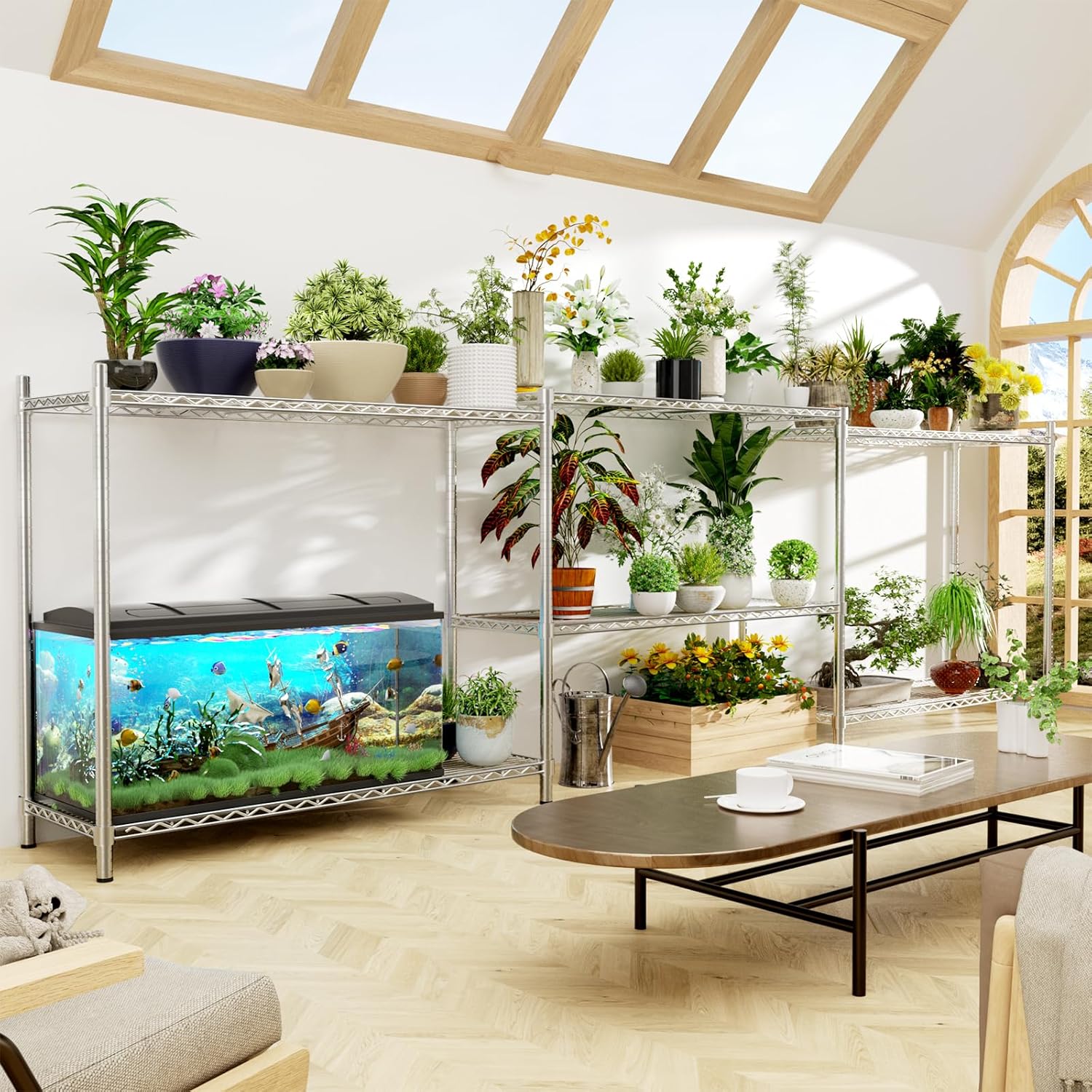 Storage Shelves, 4 PCS 48" L x 20" W x 47" H Heavy Duty Garage Wire Shelving Unit Loads 1200LBS, 3-tier Adjustable Metal Industrial Utility Shelf Rack for Kitchen, Laundry Room, Basement