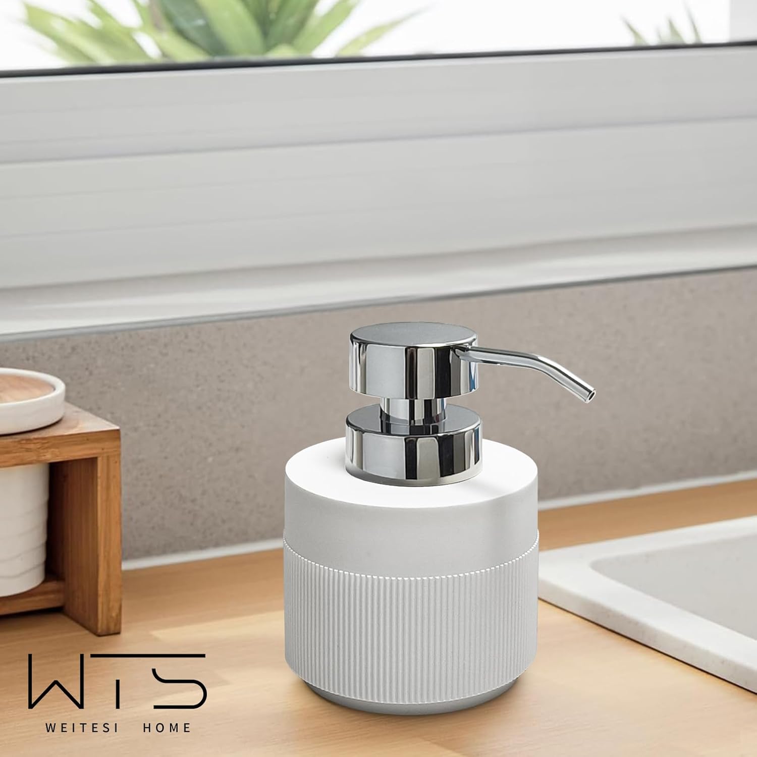 • Stylish Modern Design: With a sleek matte finish and finely polished edges, this soap dispenser adds a touch of elegance to your space. The uniquely designed vertical stripes on the lower half enhance its aesthetic appeal, making it a stylish accessory that complements contemporary and minimalist decor.