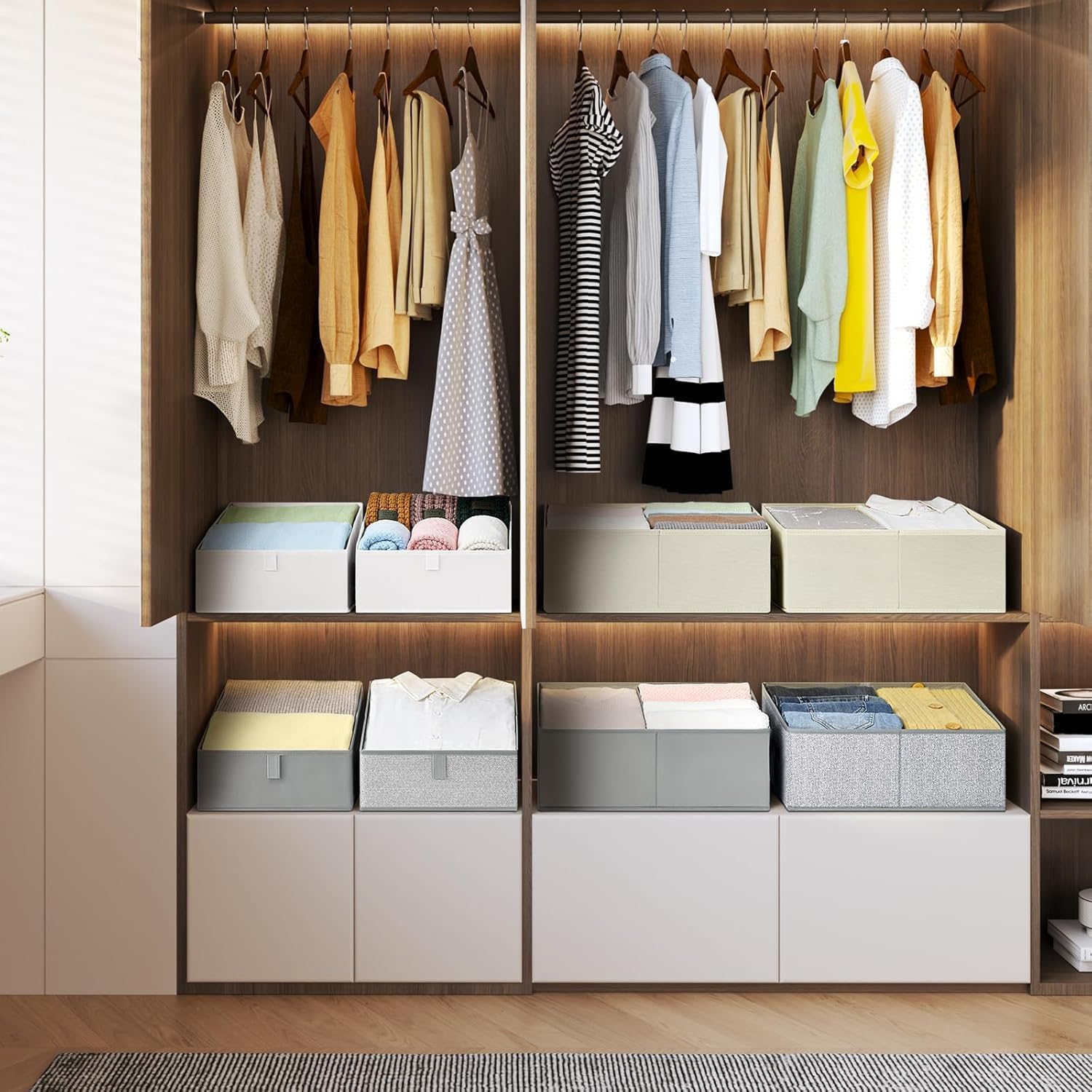 • 【Multipurpose】These closet shelf organizer for organizing towels, winter clothes, toys, magazines, DVDs, office & crafts supplies, etc. these fabric storage bins fits nicely onto shelves, beds, desks in the bathroom, bedroom, or living room